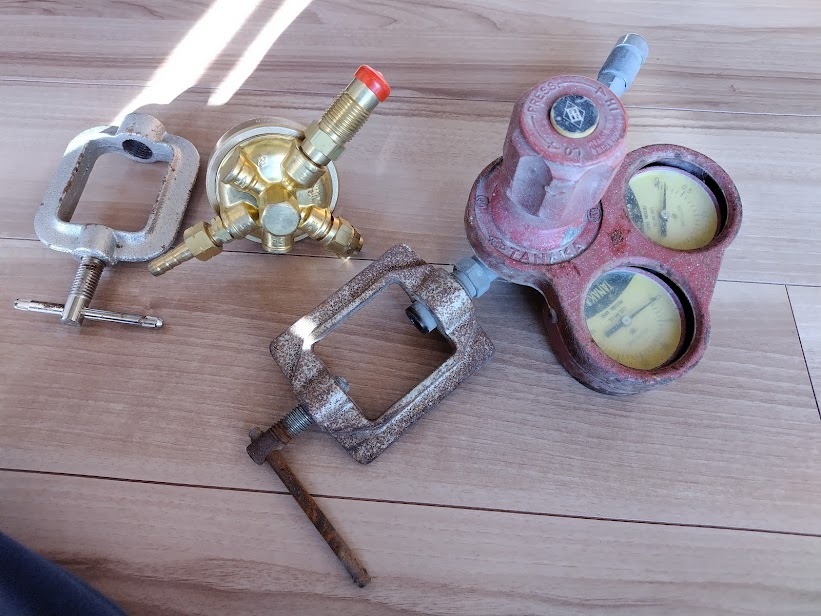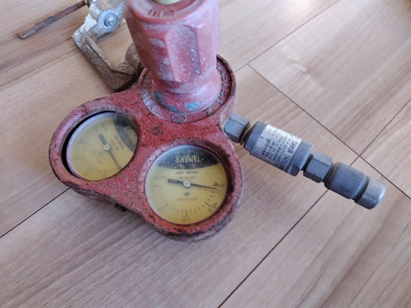 アセチレン調整器 使用品(向かって左側)もお付けいたします。
