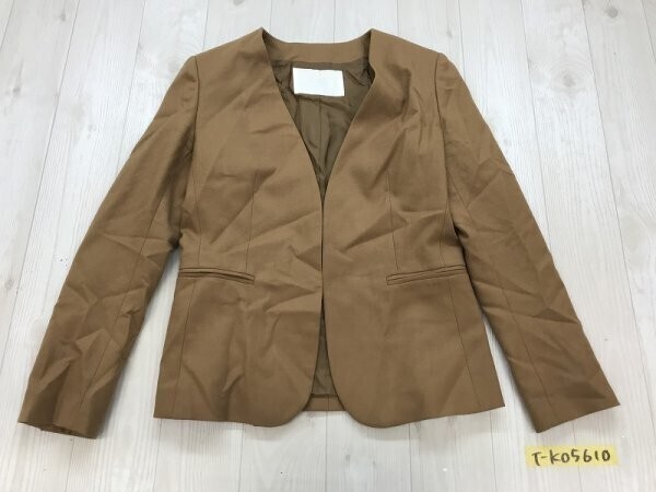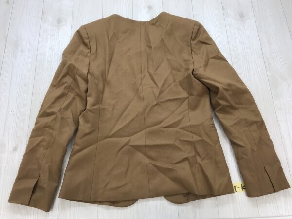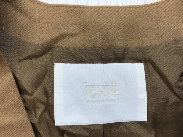 美品!ICHIE レディース 日本製 袖スリット ノーカラージャケット 秋冬 ウールMIX 肩パッド キャメル です。