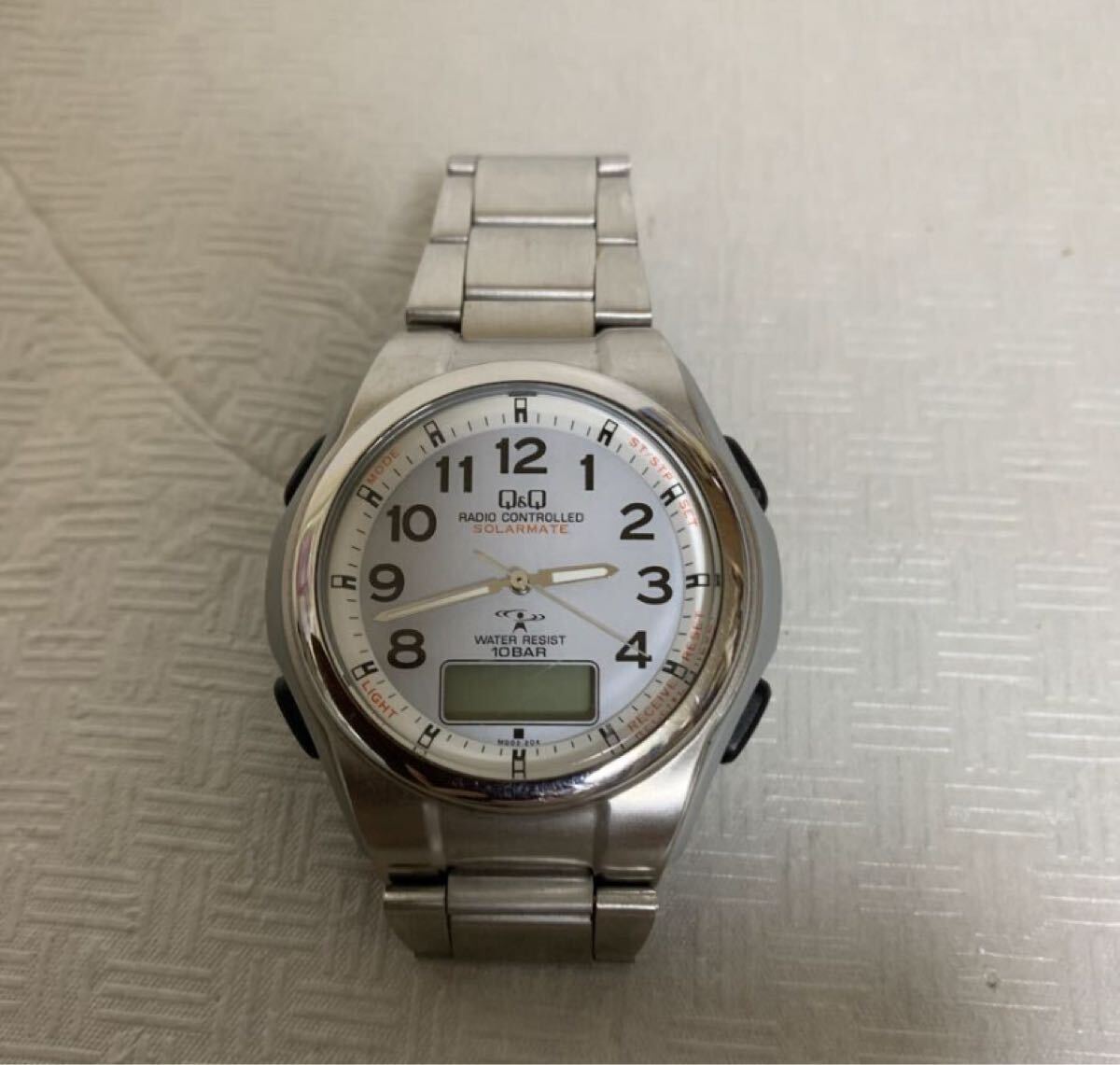Q&Q SOLAR MATE RADIO CONTROLLED キューアンドキュー電波ソーラー腕時計/部品取り用/現在動作不動/USED…ジャンク扱