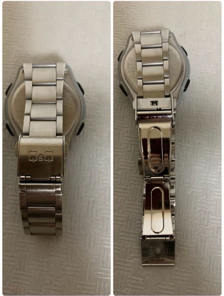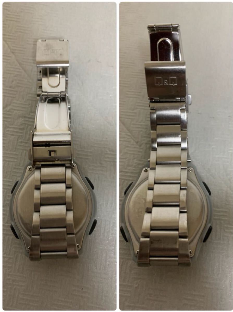 風防 擦れ小傷 削れ ベゼルやリューズ(デジタルなどの場合ボタンタイプ)その他の金属部分などもくすみ擦れ小傷削れ溝など汚れ付着 ベルト元々の品物か不明 社外品の場合ありくすみ擦れ小傷汚れみぞなど茶色い汚れサビ?などダメージございます。