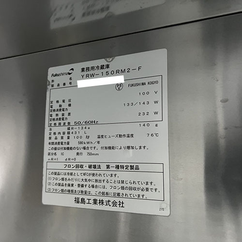 【業界最長1年保証】冷蔵コールドテーブル フクシマガリレイ(福島工業) YRW-150RM2-F 業務用 中古/送料別途見積