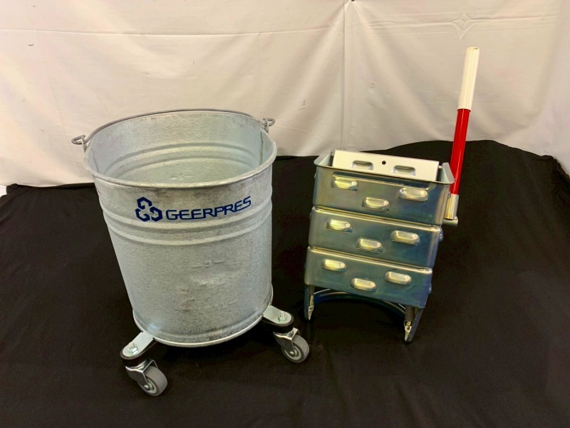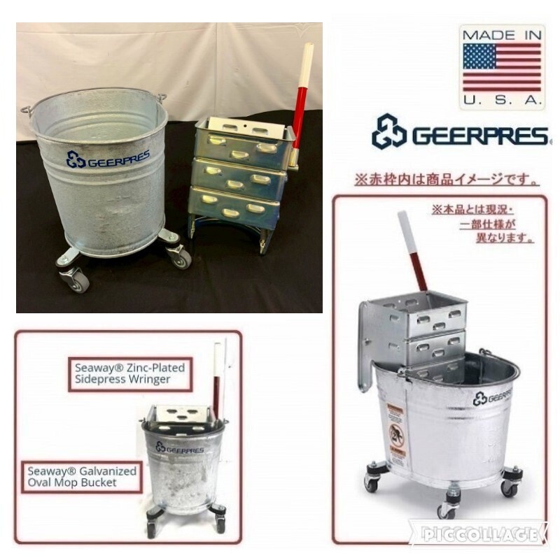 #【アメリカ製】未使用品 GEERPRES モップ絞り器 ドーリー付モップバケツ オーバルブリキバケツ 掃除用具 米軍放出 (140) HJ28DK-W#25
