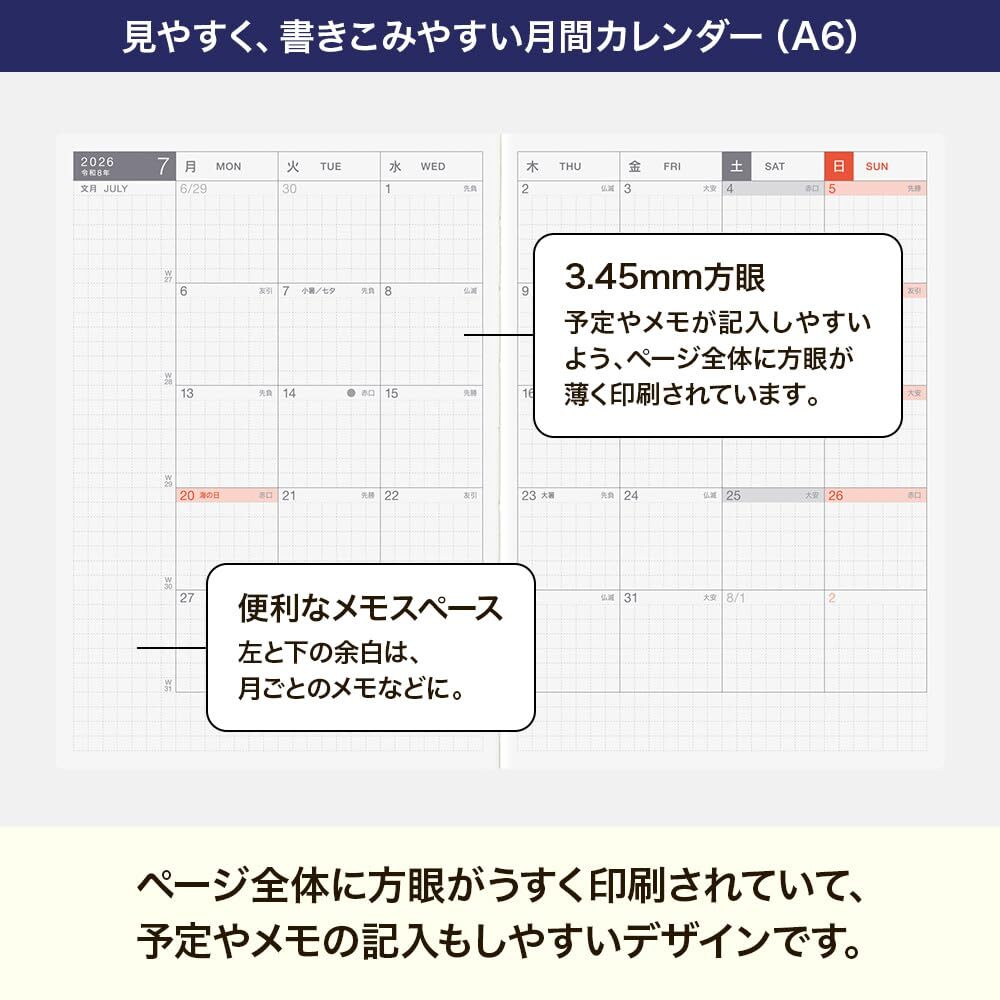 ほぼ日手帳2026本体day-free[A6/月間+ノート/1月/月曜はじまり]