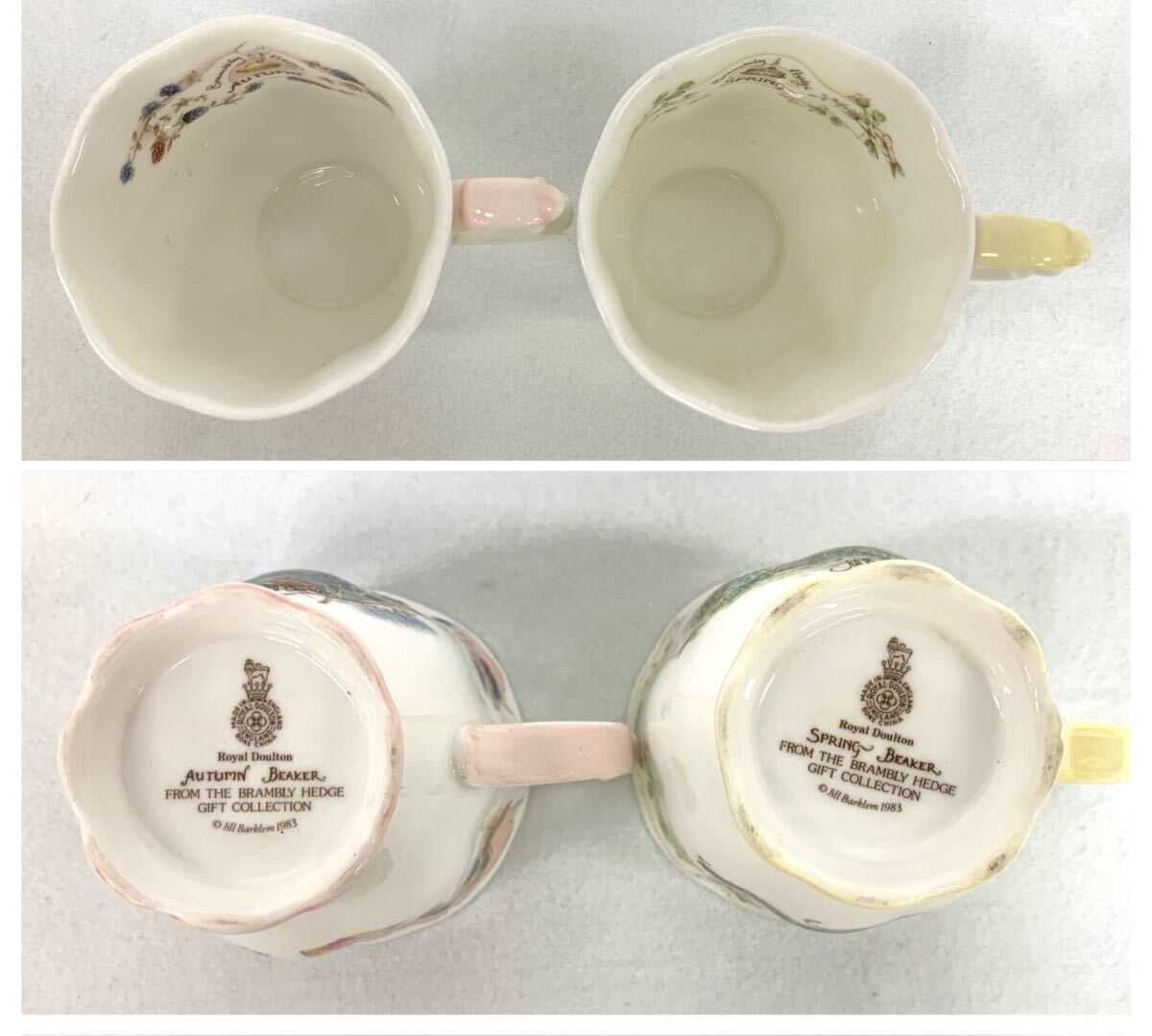 T10/090 Royal Doulton ロイヤルドルトン カップ 小皿 7点セット 四季イラスト Bramby hedge ブランブリーヘッジ ホワイト他
