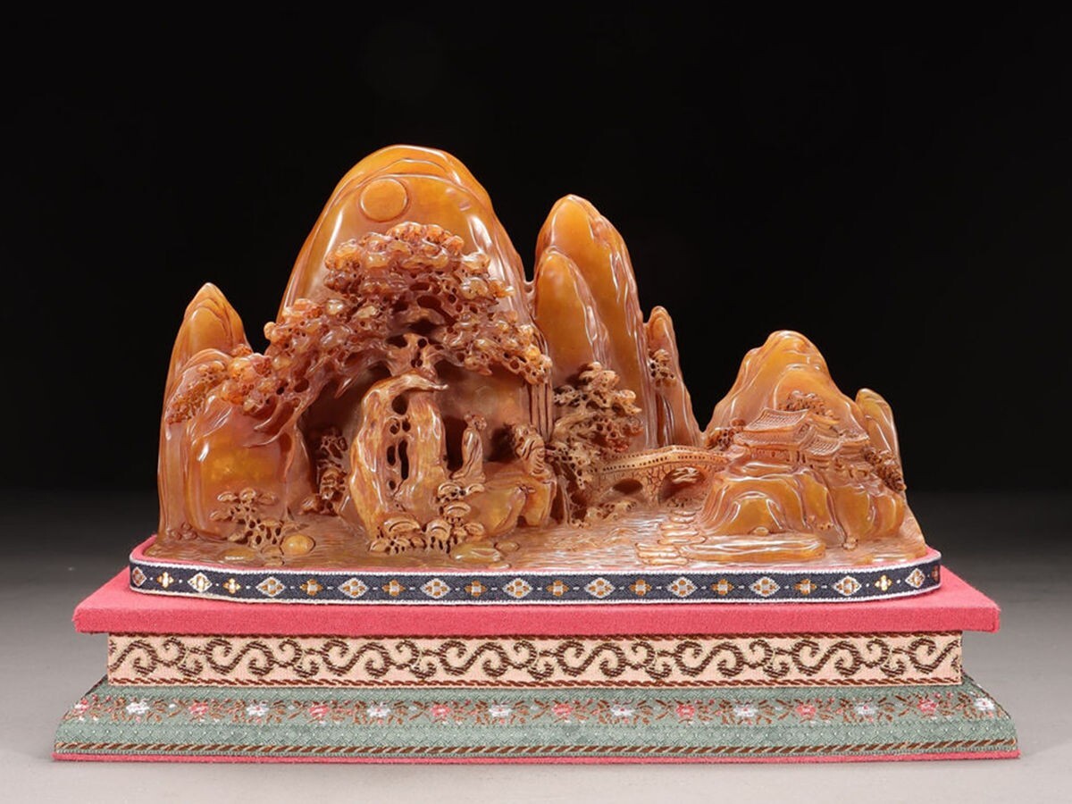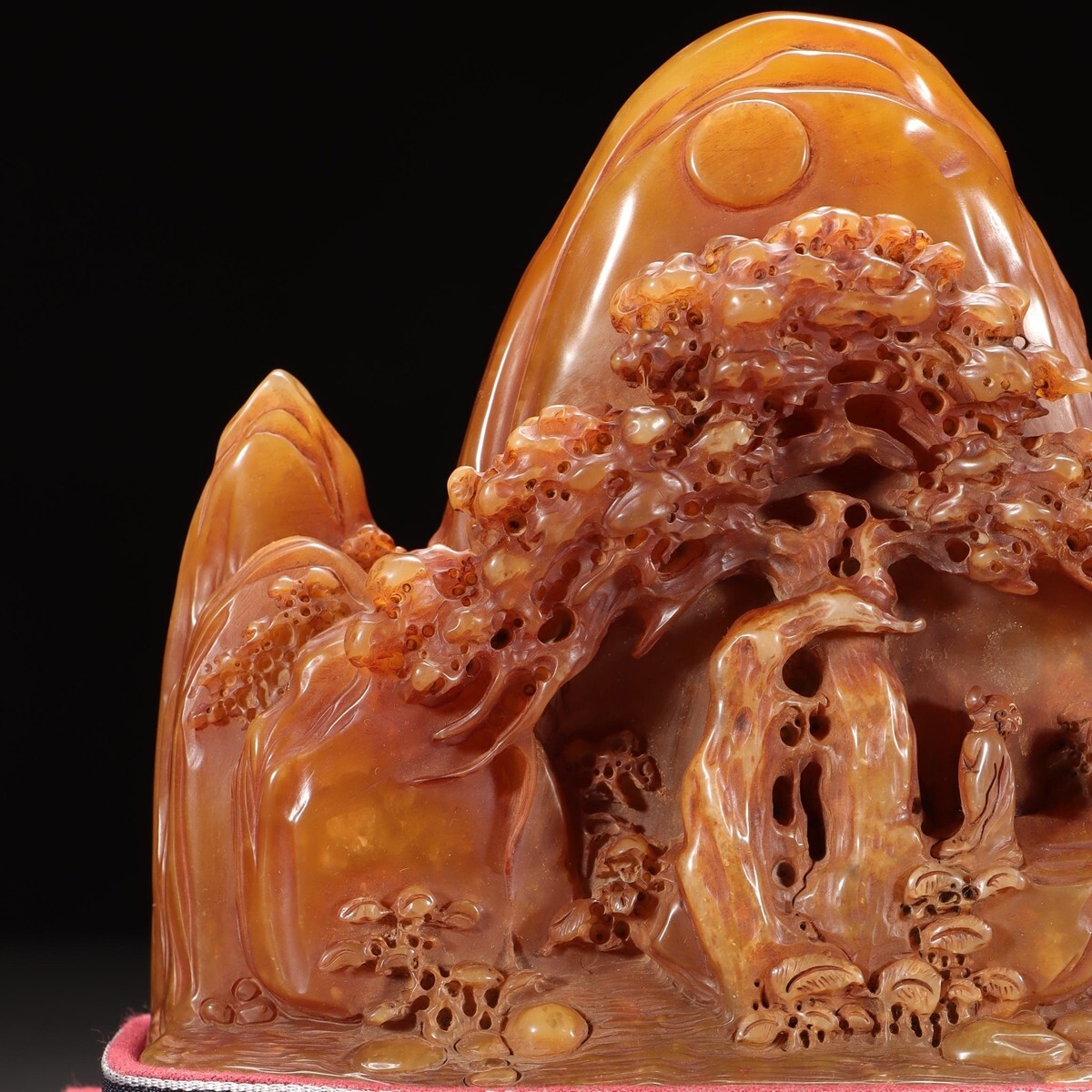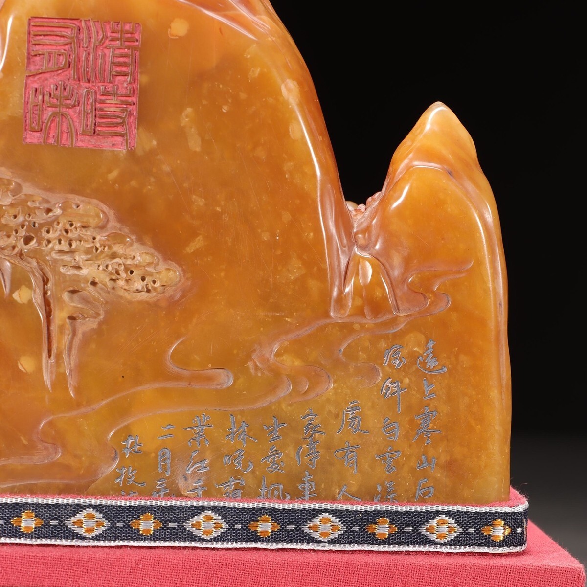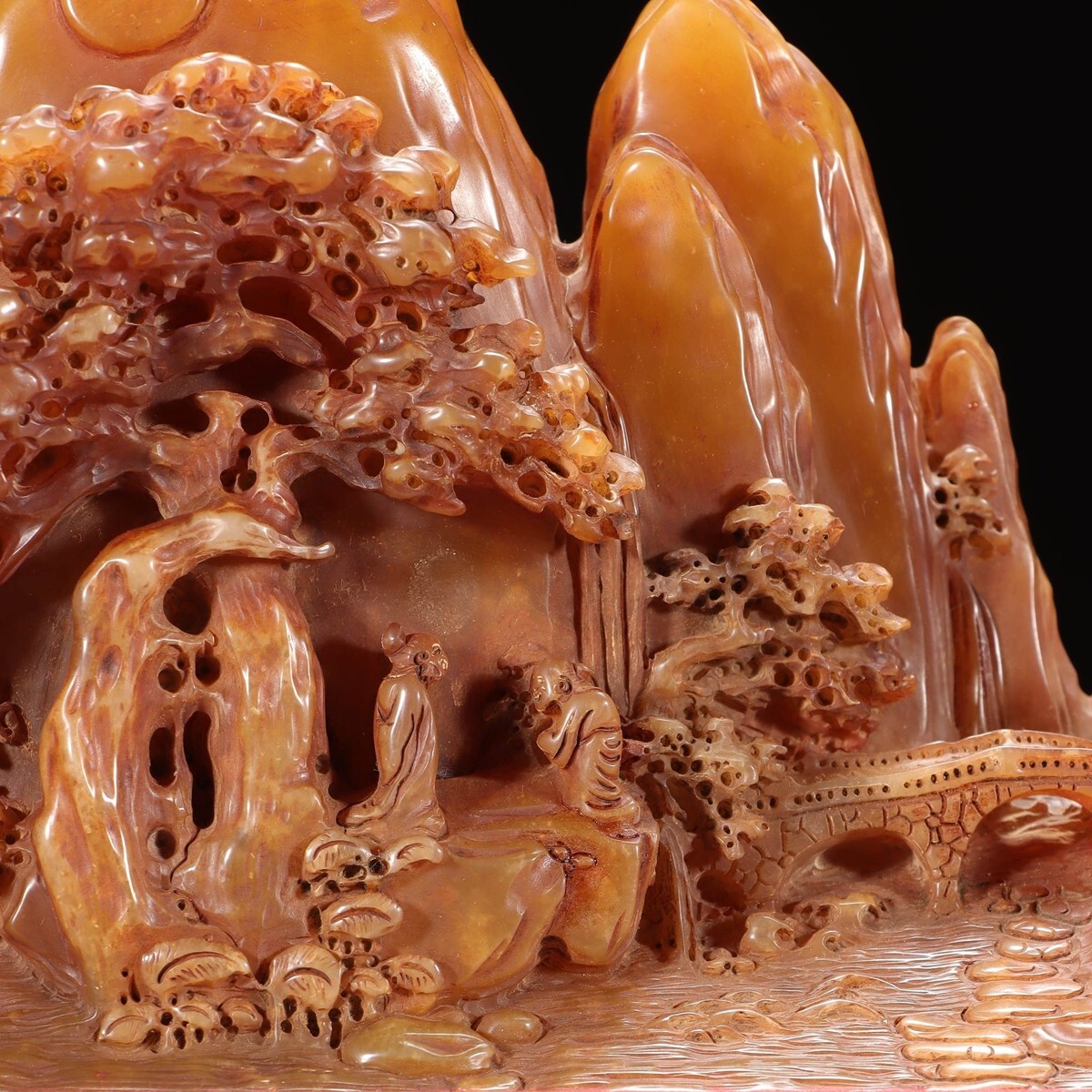 「清 友清 老寿山石 田黄石彫り 松下高士 山子擺件」極細工 擺件 古賞物 中国古美術 旧蔵出