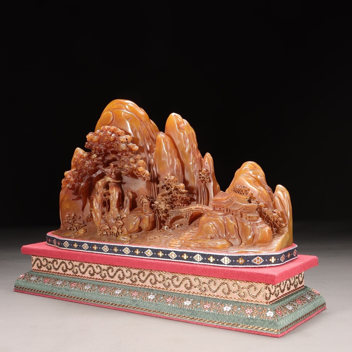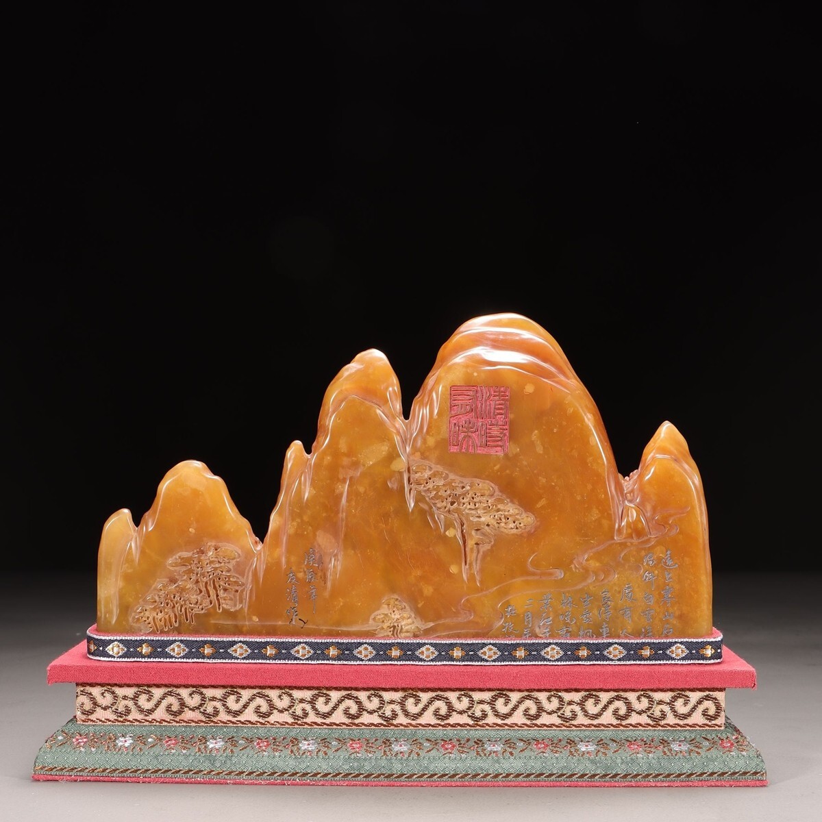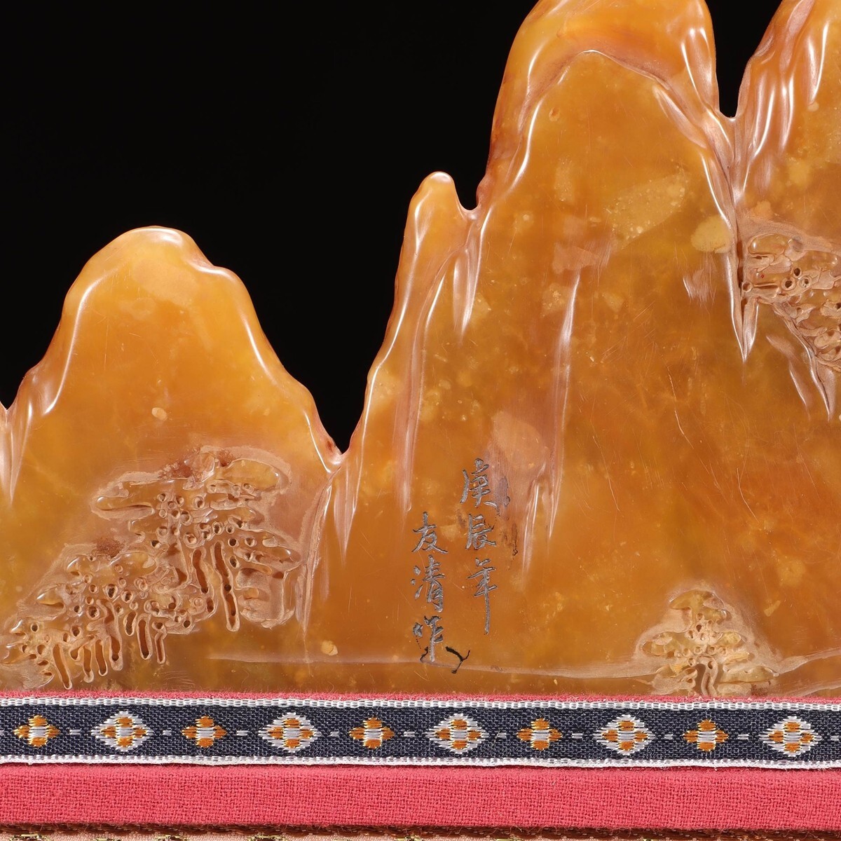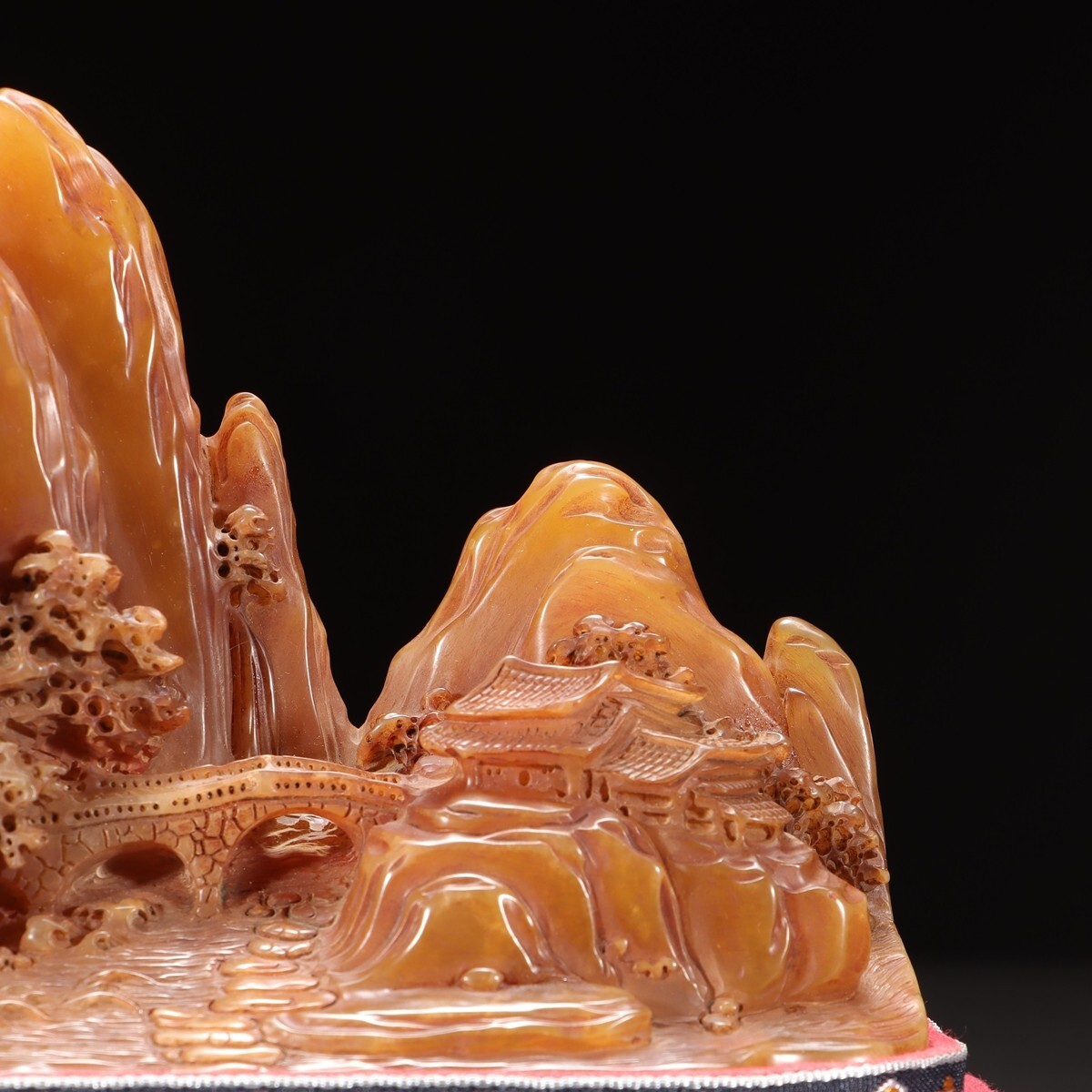 「清 友清 老寿山石 田黄石彫り 松下高士 山子擺件」極細工 擺件 古賞物 中国古美術 旧蔵出