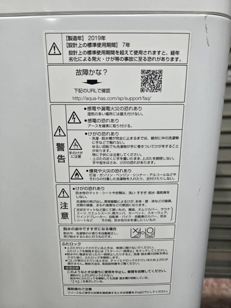 2019年製 仕様 (AQW-GV100H) 容量 洗濯・脱水 10.0kg 標準使用水量(定格) 約105L 水量 68(手動)・55~(無段階)~16L手動 標準コース運転目安時間 (50/60Hz) 約35分 定格消費電力(50/60Hz) 350W 消費電力量(50/60Hz) 69Wh 運転音(洗い/脱水/乾燥) 洗い 約37dB / 脱水 約38dB 総外形寸法(排水ホース含む) 幅620mm(排水ホース含む)×奥行665mm×高さ1060mm ホ゛テ゛ィ幅 580mm 設置可能防水ハ゜ン(奥行内寸法) 505mm以上(奥行内寸法) 本体質量 約56kg 保管品の為、擦れ汚れ等御座います。 状態等は写真でご確認下さいませ。 ◆商品は画像に写っているものが全てです。 ◆サイズは多少の誤差ありますのでご了承下さい。 ◆付属品は写真の物が全てです。 ◆ご利用のパソコンなど環境により色が違って見える場合があります。 ◆キャンセル、返品などは出来ません。 ◆入札のお取り消しは致しておりません。 ◆写真にてキズ・カケ・汚れ等をご確認ください。 ◆判断ができない場合は入札をお控えください。 ◆梱包は見た目より頑丈を優先しますのでご了承下さい。 ◆17時以降・土日祝日は質問にお答え出来ません。 取引の流れは以下になります。 ※簡単決済のみ※ 1 落札後、取引ナビより送り先(名前・住所・電話番号)をお知らせ下さい。 2 本文記載の料金表の送料+商品代金を決済下さい。 3 入金確認出来ましたら発送後、連絡致します※土日祝日を除く 当方管理番号:じ | ||||