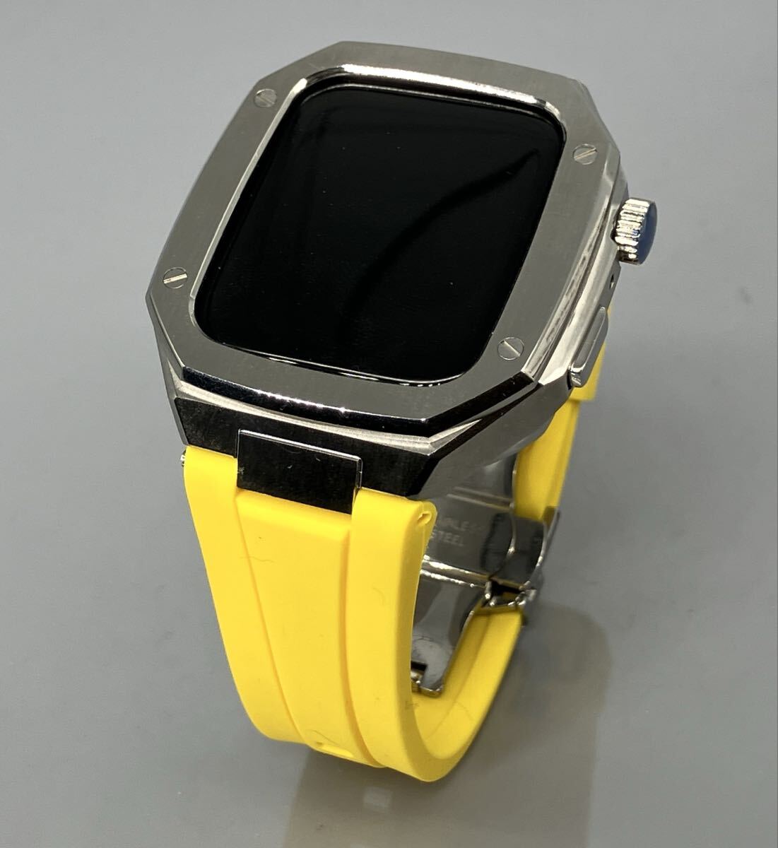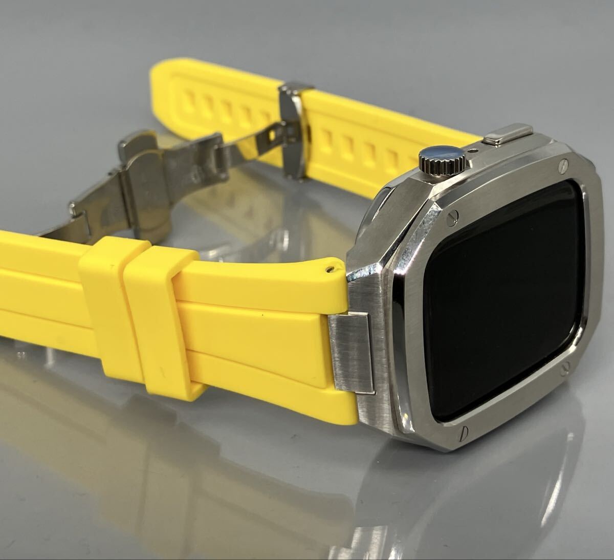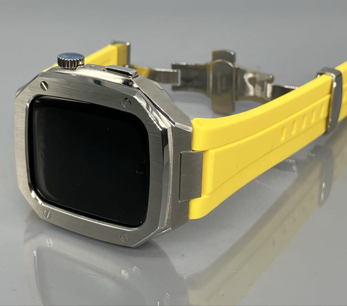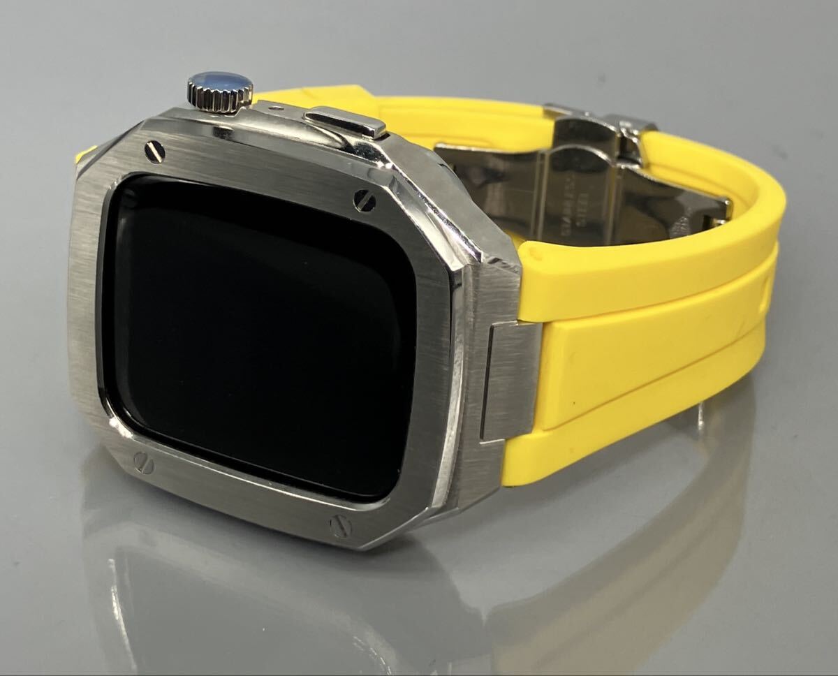 メタリックsy★アップルウォッチバンド ラバーベルト Apple Watch ケース カバー 44mm 45mm 46mm
