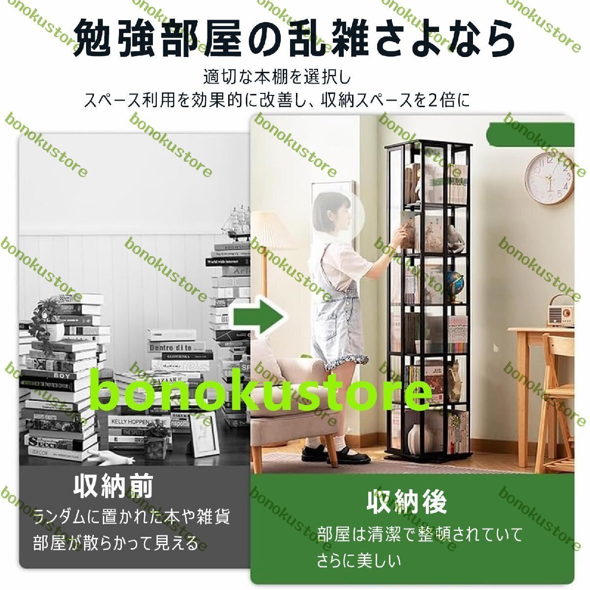 商品説明 【360°回転本棚】360°自由に回転、幅37cm、収納に便利です。オープンなデザインで本が取り出しやすい。寝室、リビングルーム、書斎、ゲームルームなどに設置して、生活空間を最大限に活用できます。 【大容量5/6層本棚】6層の棚設計を採用。フロアごとに4つの区画