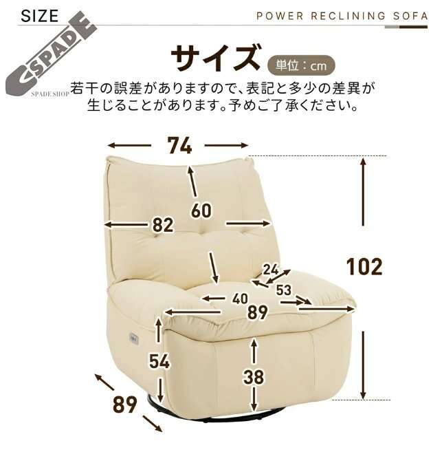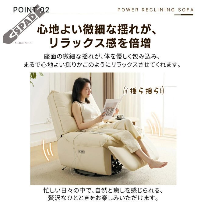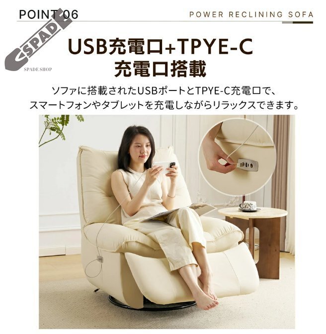 【国内発送】リクライニングソファー 肘掛けなし USB+Type-C充電口付き 147° 調整可能 270° 回転 ゆったり 電動リクライニングソ
