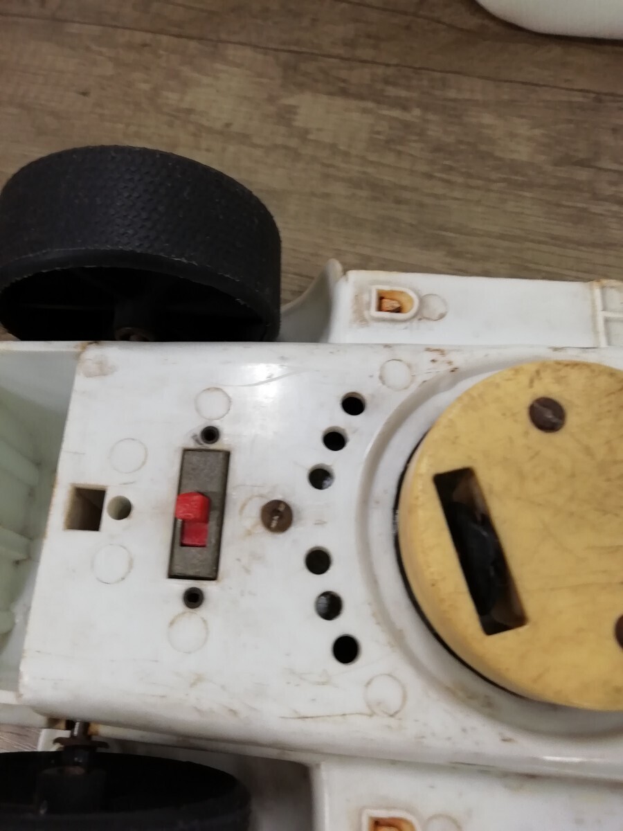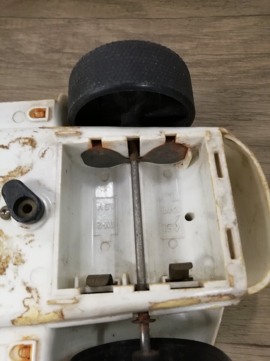 軽いチェックを行いました。破損、パーツ欠品、キズ、へこみ、サビが見られます。電池ボックスのフタが欠品しています。なお、動作に関しては未チェックとなります事をご了承願います。以上の理由からジャンク品とさせて頂きます。その他全体にわたって経年、長期保管による傷、汚れ、サビ、劣化などございます。画像でご判断ください、画像のものがすべてになります。以上の点をふまえジャンク品である事をご理解の上、ご入札お待ちしています。