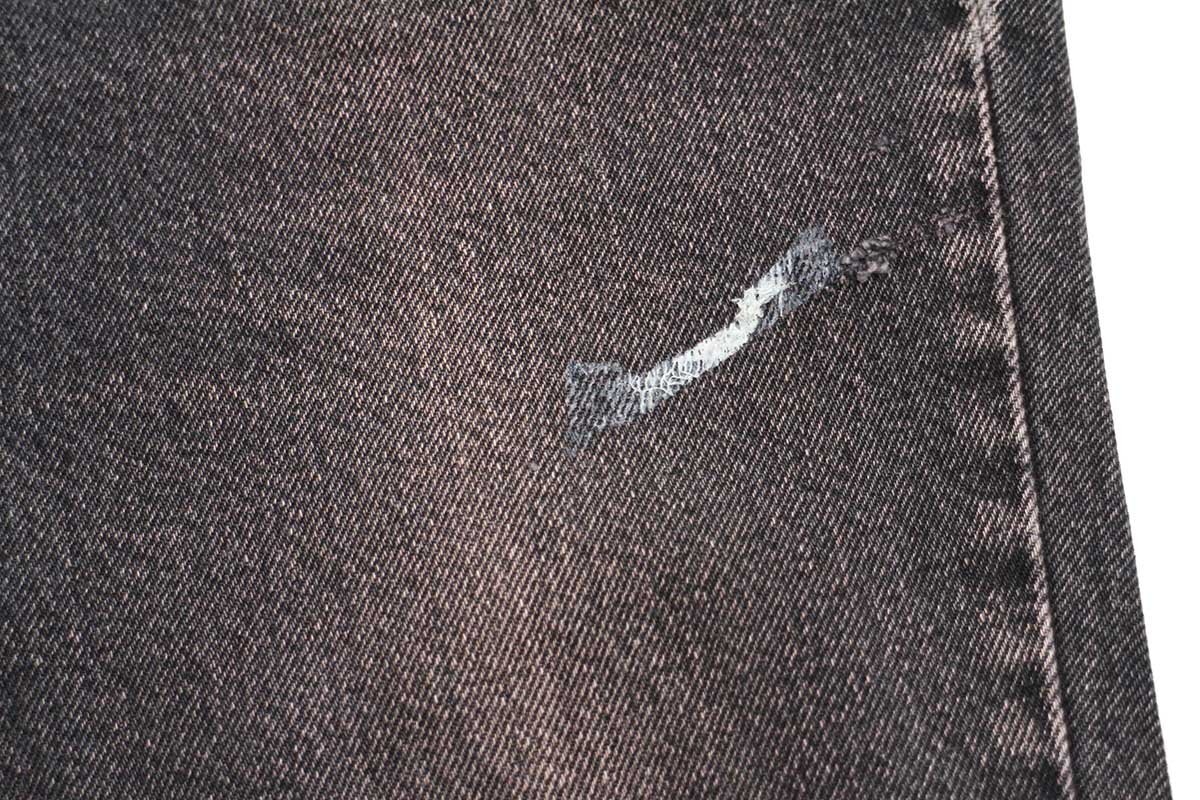 コンディション:着用感があり、左モモにボンドのような汚れ(若干の粘着性あり)とキズ、裾に細かい擦れ、全体的に赤く染まっています。目立つダメージはなく、生地もしっかりしていて、味とご理解いただける方でしたら問題なく着用いただける程度です。