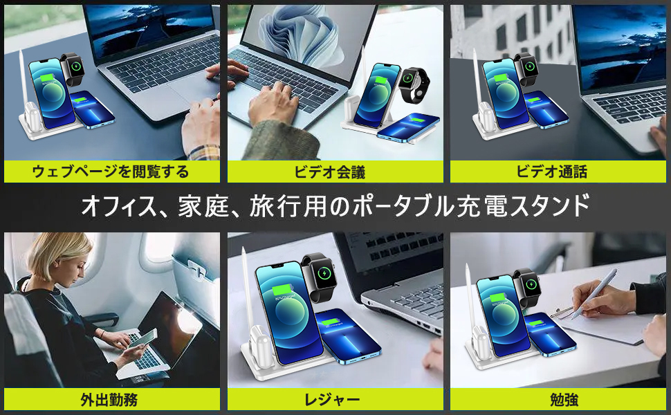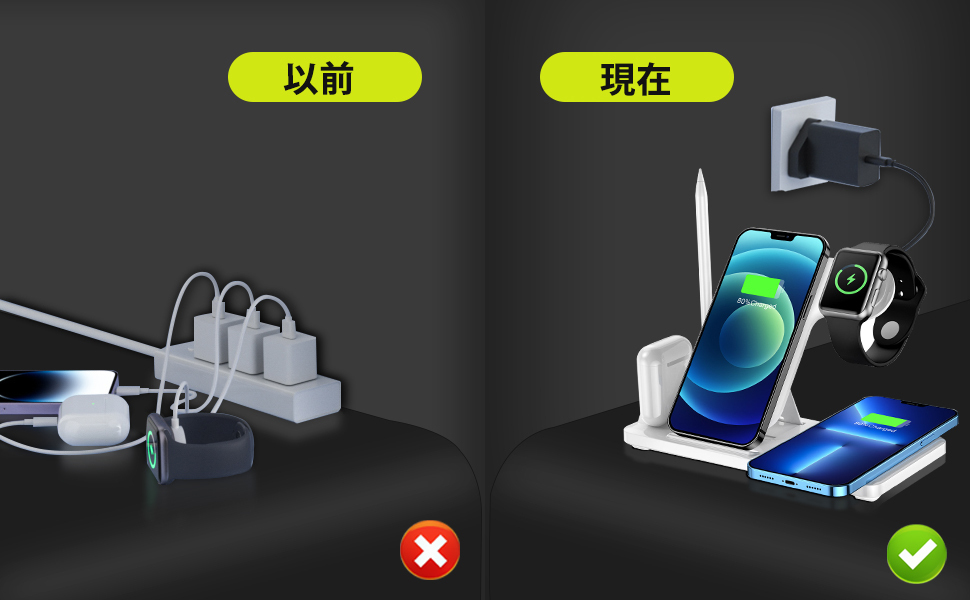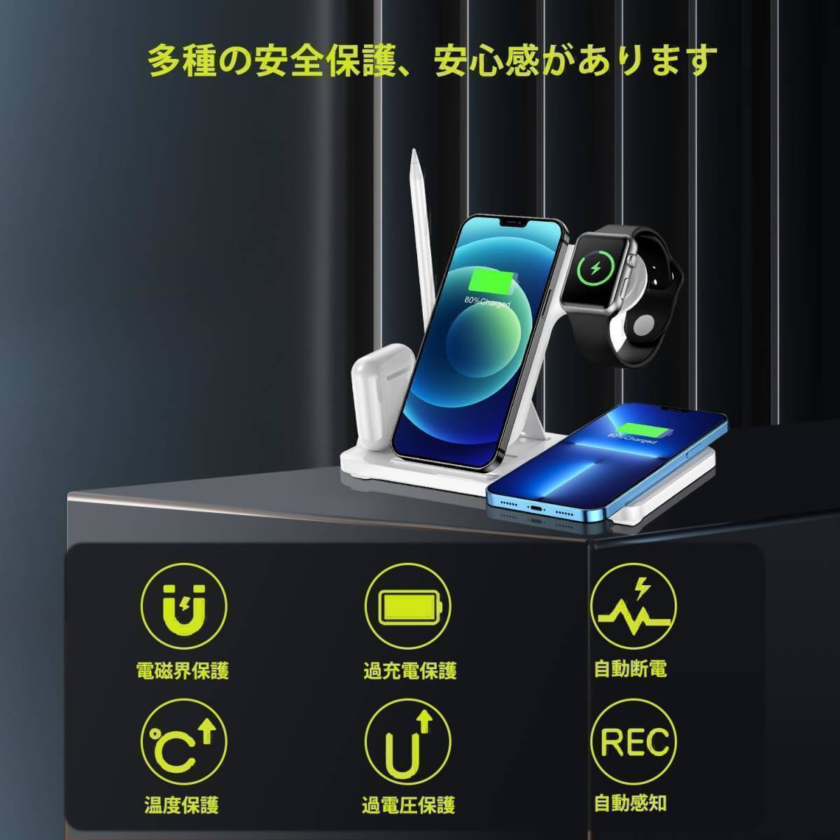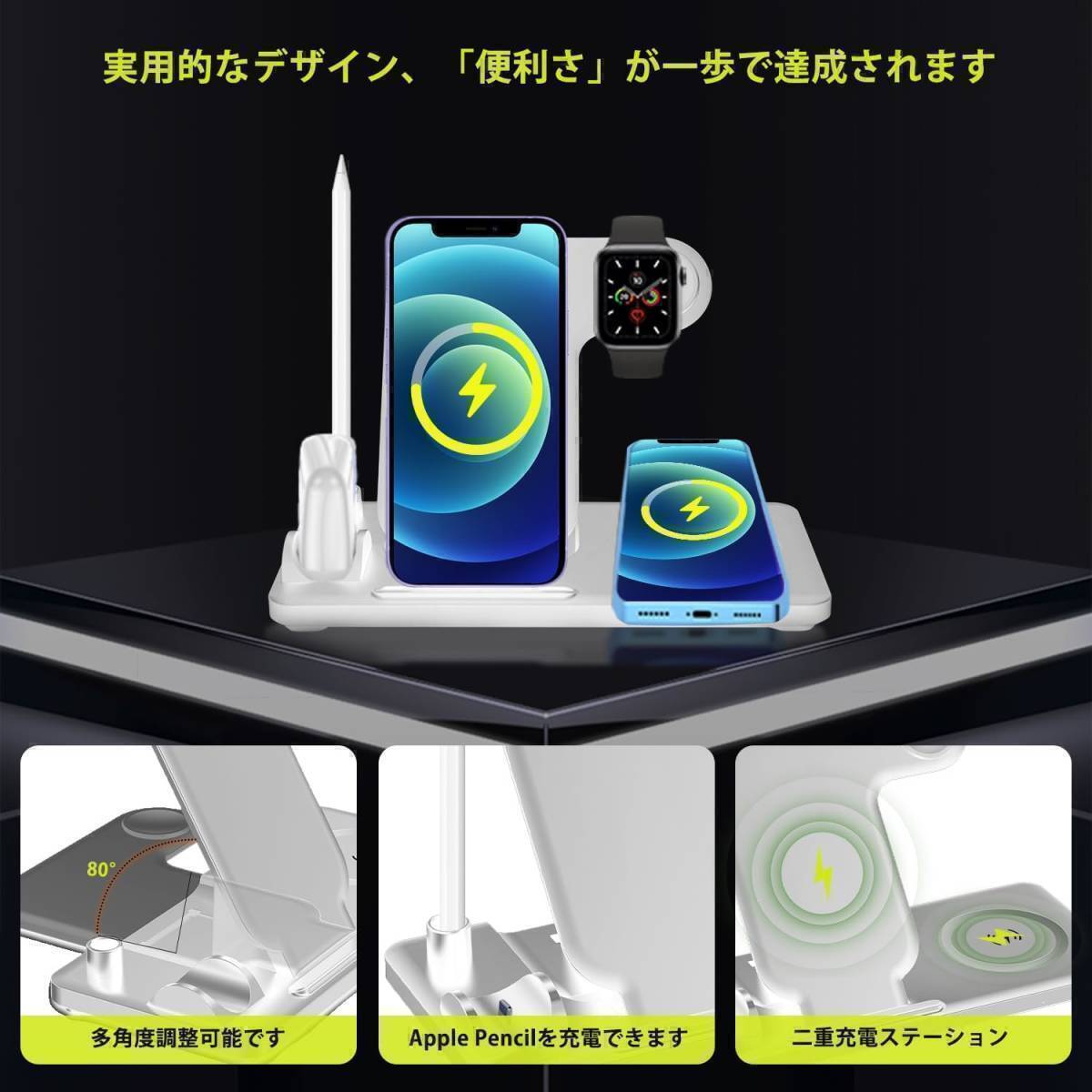 Qiワイヤレス充電技術を搭載し、iphone携帯電話、applewatch、airpods、applepencilを同時に充電できます。