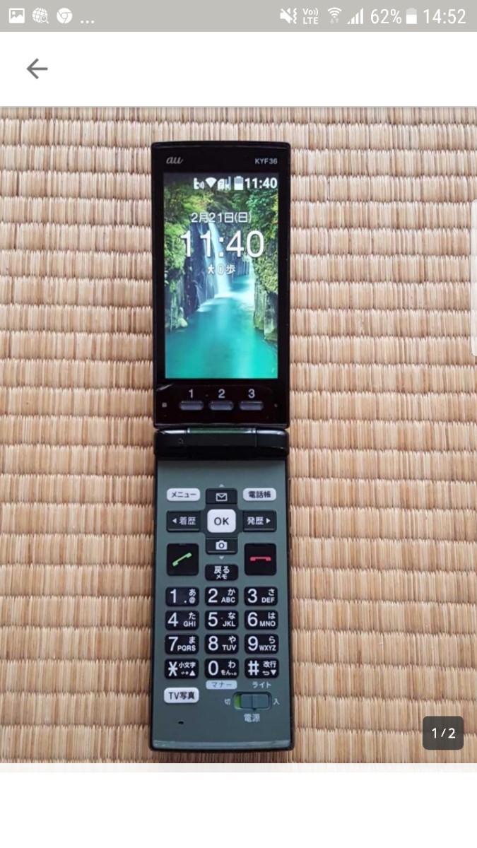SIMフリーガラホ、kyf36、かんたんケータイ、グリーンです。