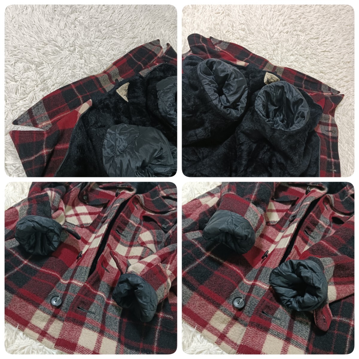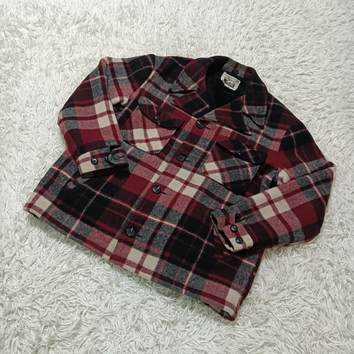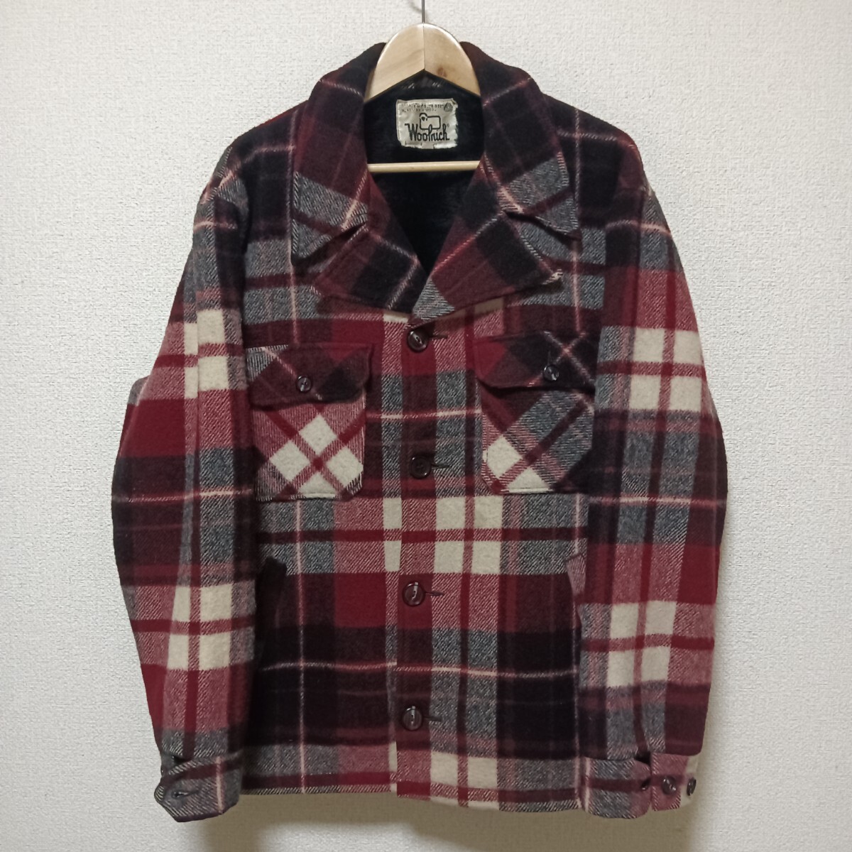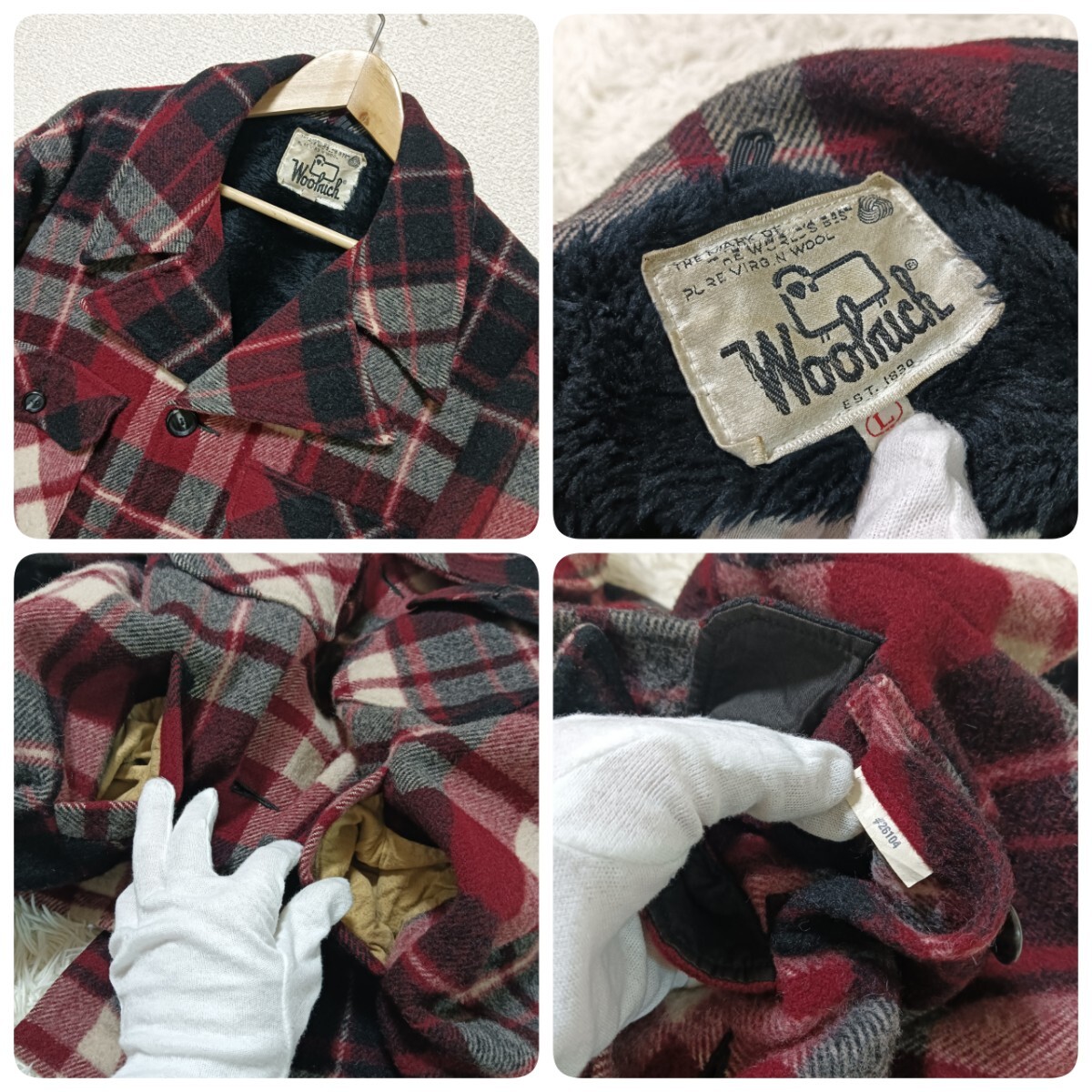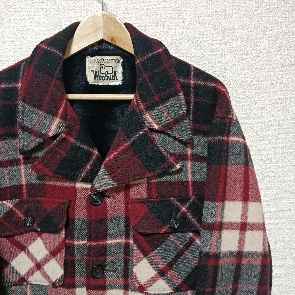 ★60-70's VINTAGE OLD Woolrich CPOジャケット ウール ナイロン メルトン フェルト アウター 裏ボア シャツ レッド ブラック 赤黒白系 チェック柄 羊白タグ ユニセックス レディース メンズ サイズL ヴィンテージ オールド ウールリッチ 希少 古着 USED