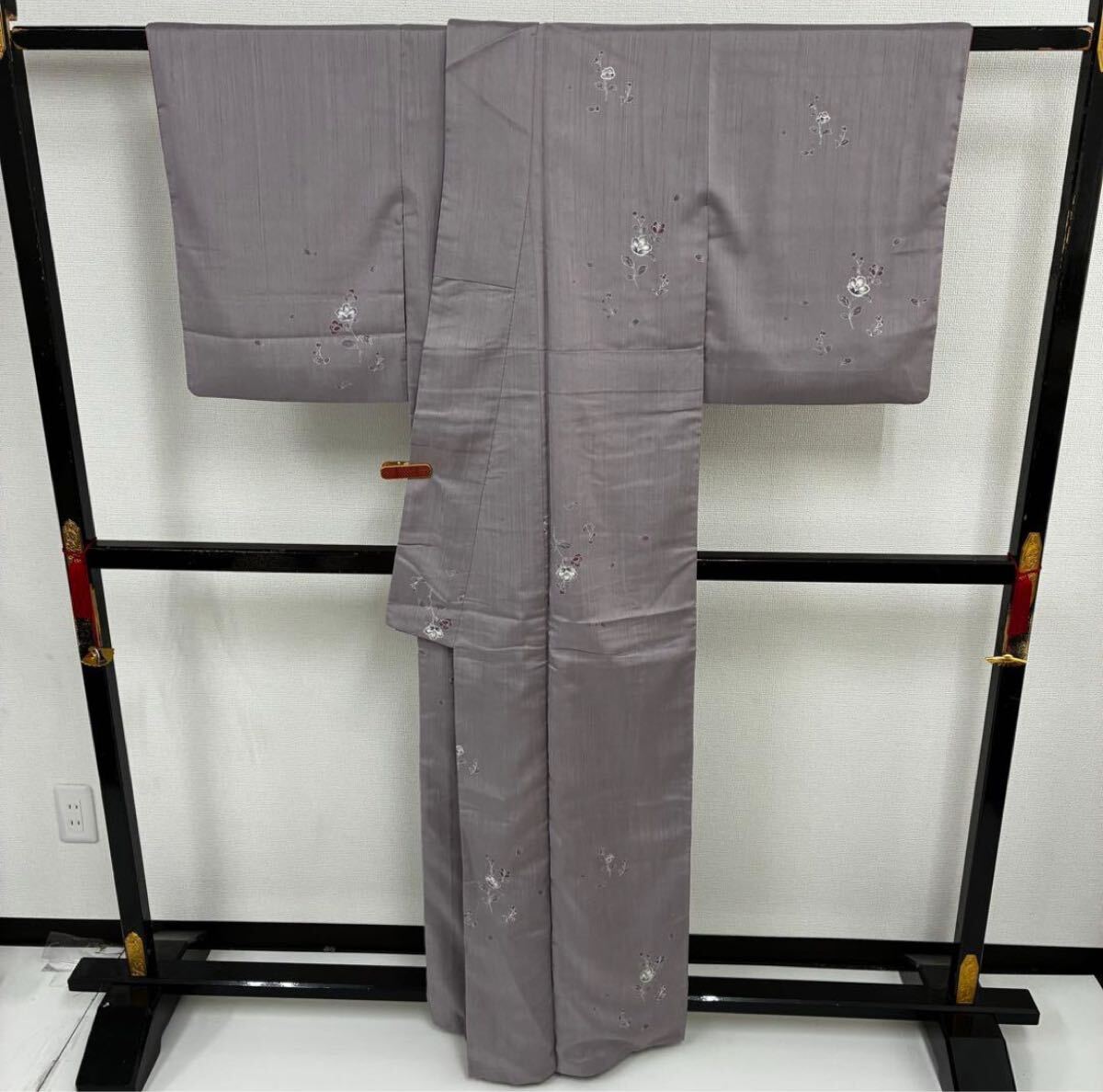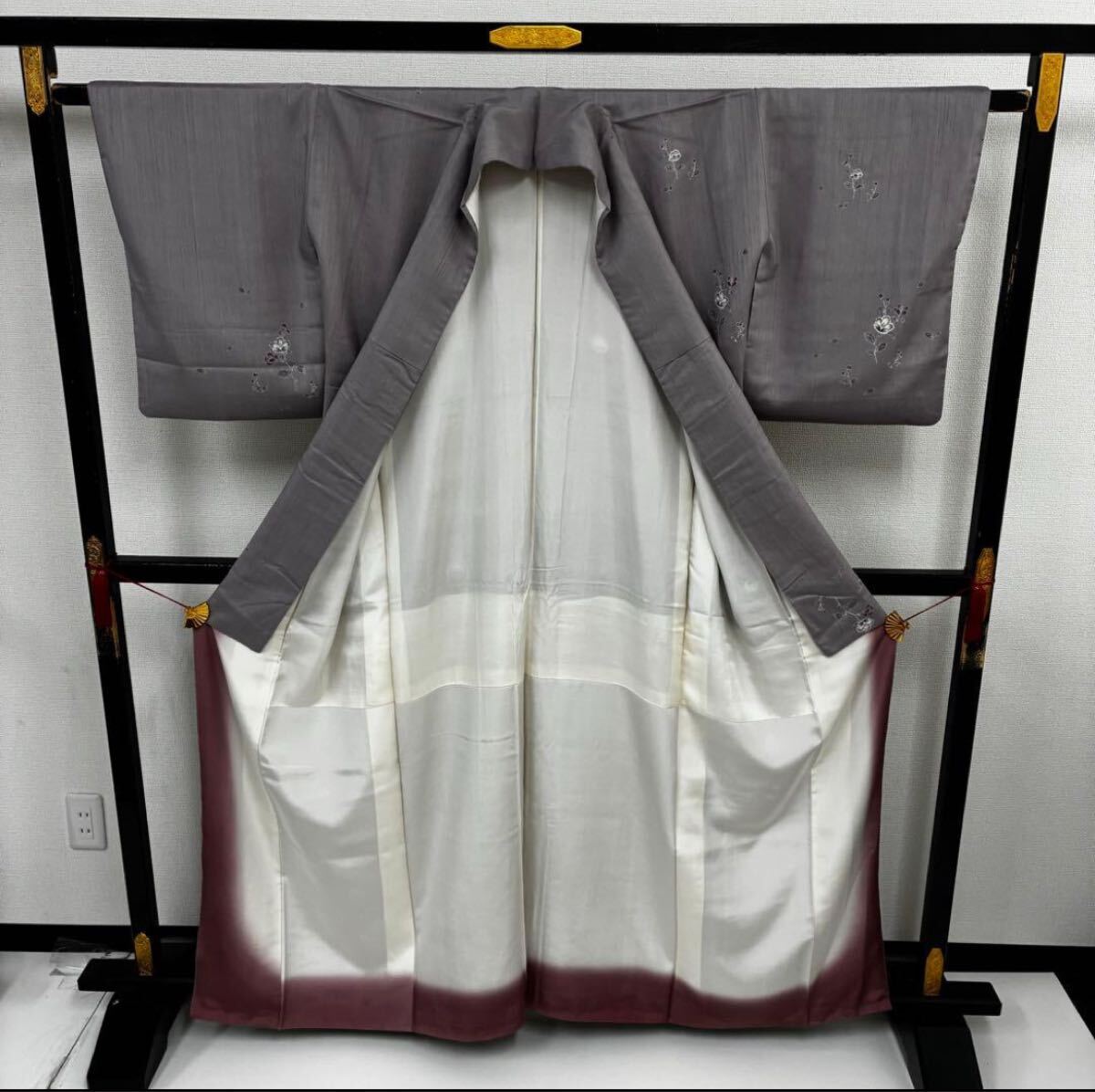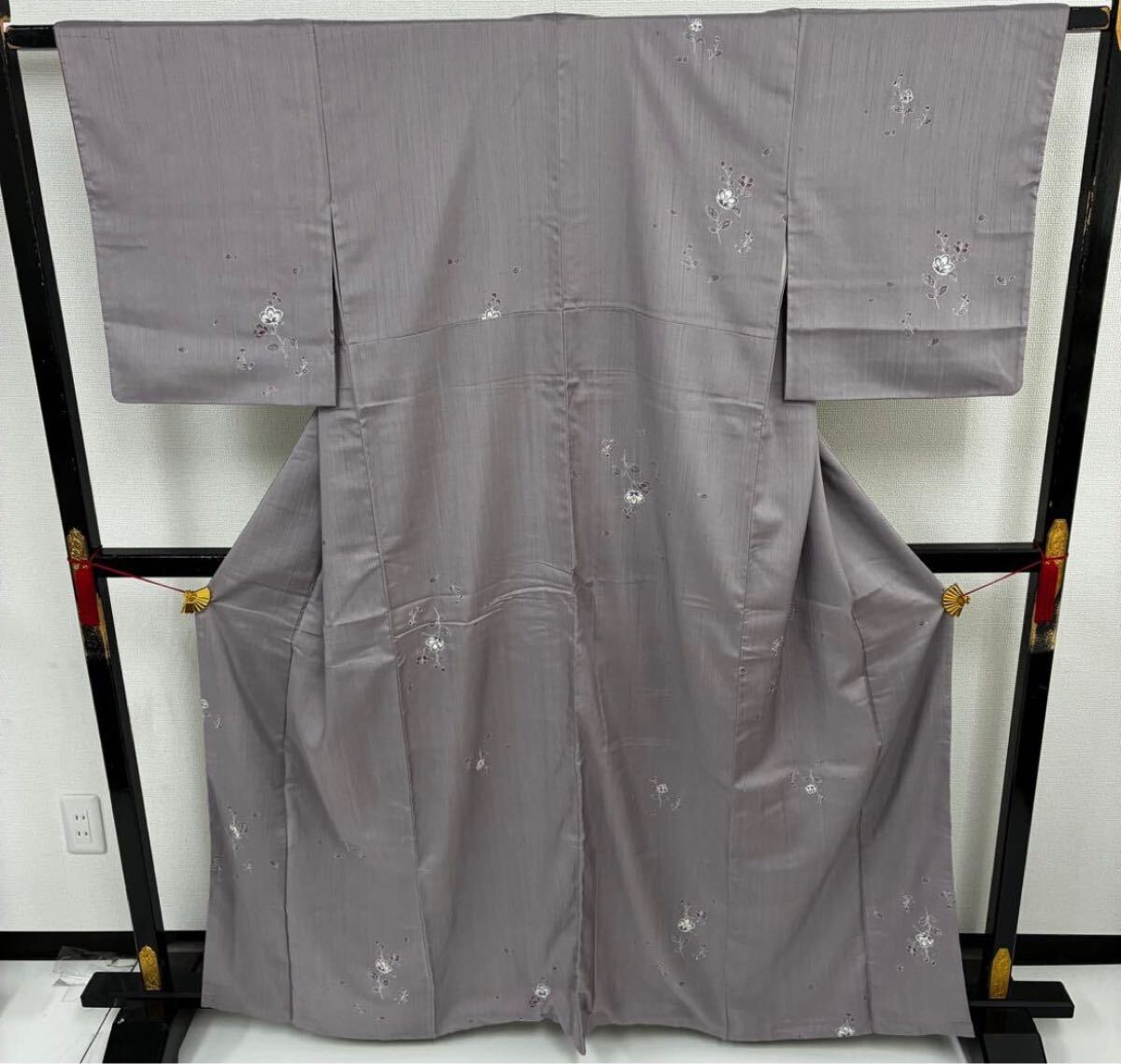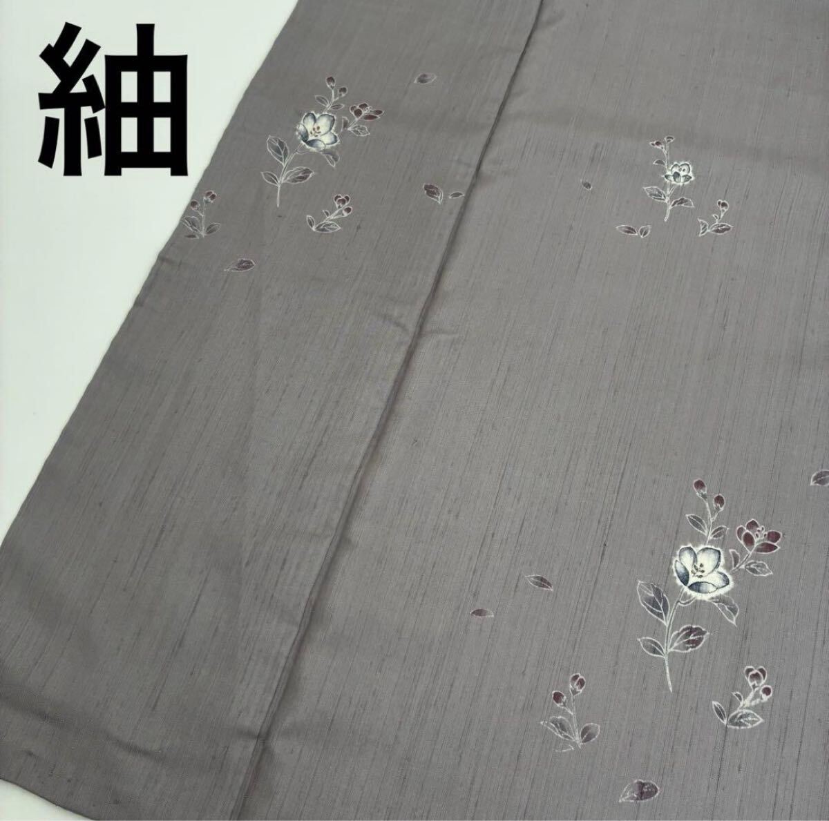 【楓】着物 紬 正絹 飛び柄の素敵な花 U-7856