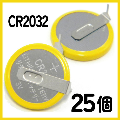【25個】 CR2032 (横型端子 タブ付き) バッテリー電池 ★ ファミコン・スーパーファミコン・携帯ゲーム・電池交換・バックアップ ★