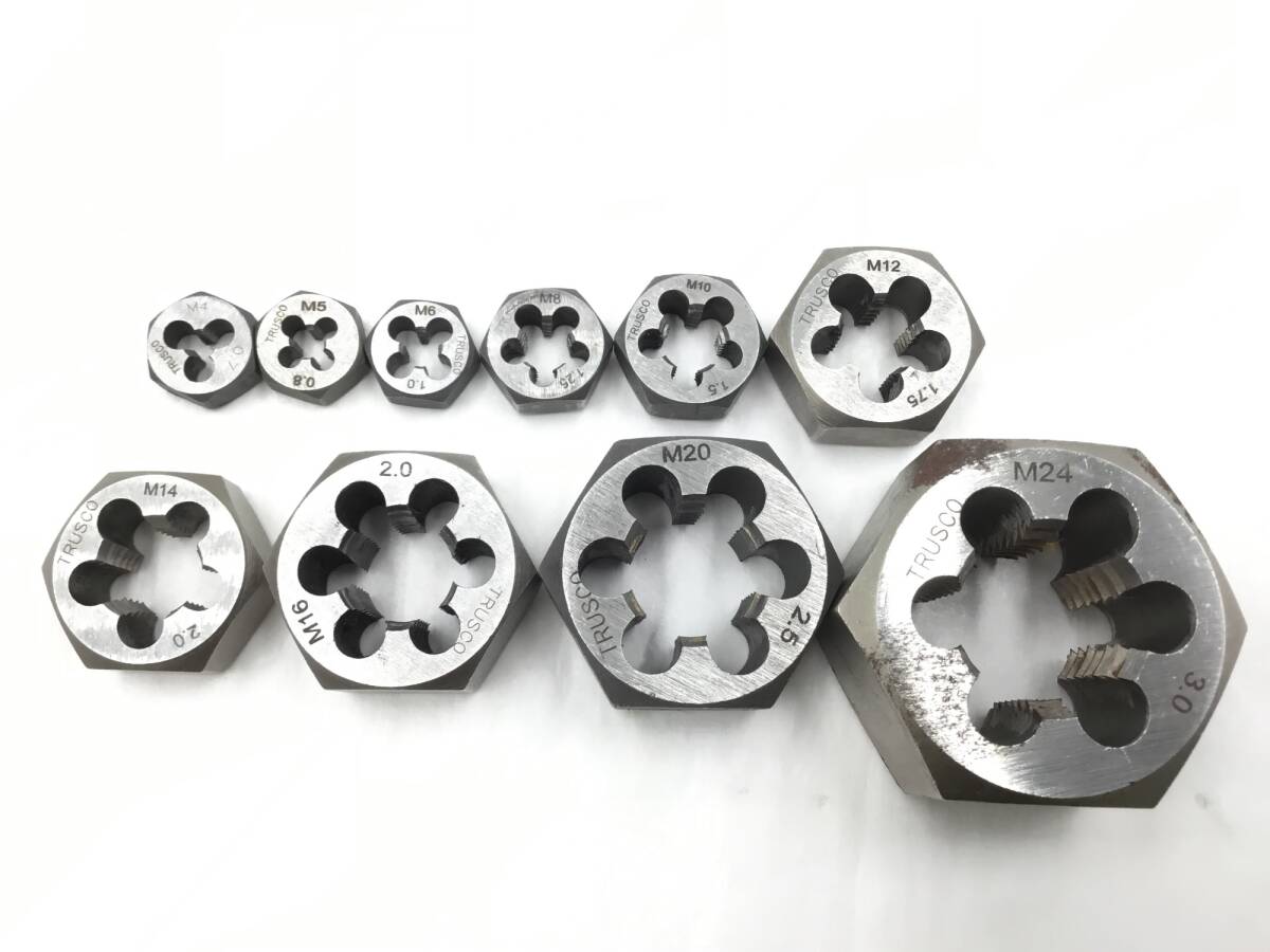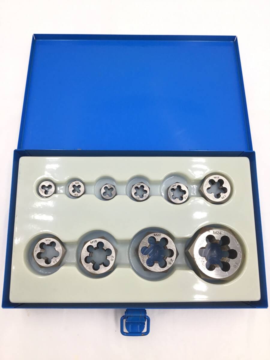 | 機能特徴 | セット内容:TD6-4X0.7、TD6-5X0.8、TD6-6X1.0、TD6-8X1.25、TD6-10X1.5、TD6-12X1.75、TD6-14X2.0、TD6-16X2.0、TD6-20X2.5、TD6-24X3.0 質量:1050g 材質:ダイス:低合金鋼(SKS) |