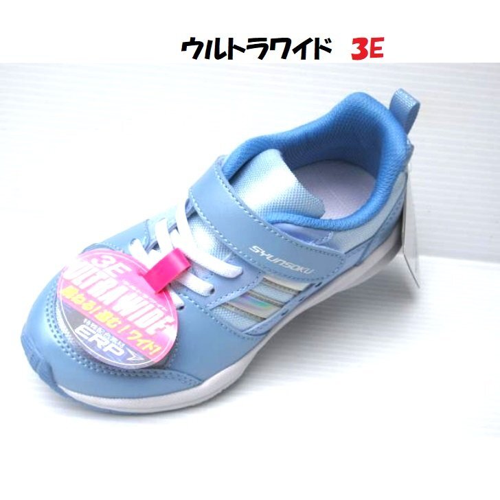 痛くない うんと幅広 ウルトラワイド 3E 23.0 瞬足 LC801 サックス EEE アキレス シュンソク 女の子 キッズ ジュニア 通学 スニーカー
