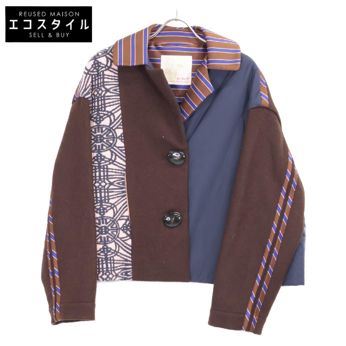 D-due デ ドゥエ ブラウン ウール100 切り返し 2Bジャケット ブラウン 38 ジャケット ウール レディース 中古