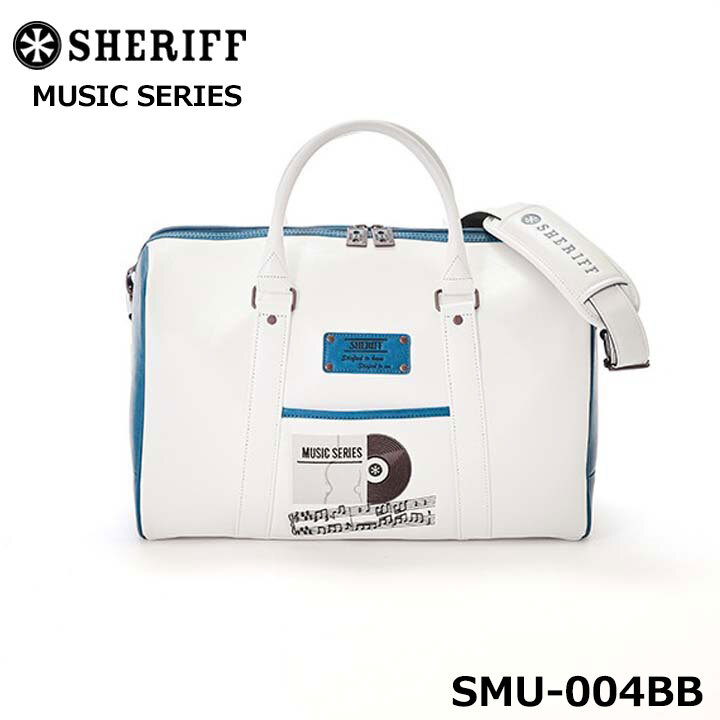 シェリフ SMU-004BB ミュージックシリーズ ボストンバッグ ホワイト×ターコイズ 合成皮革 100個限定 SHERIFF MUSIC SERIES 即納
