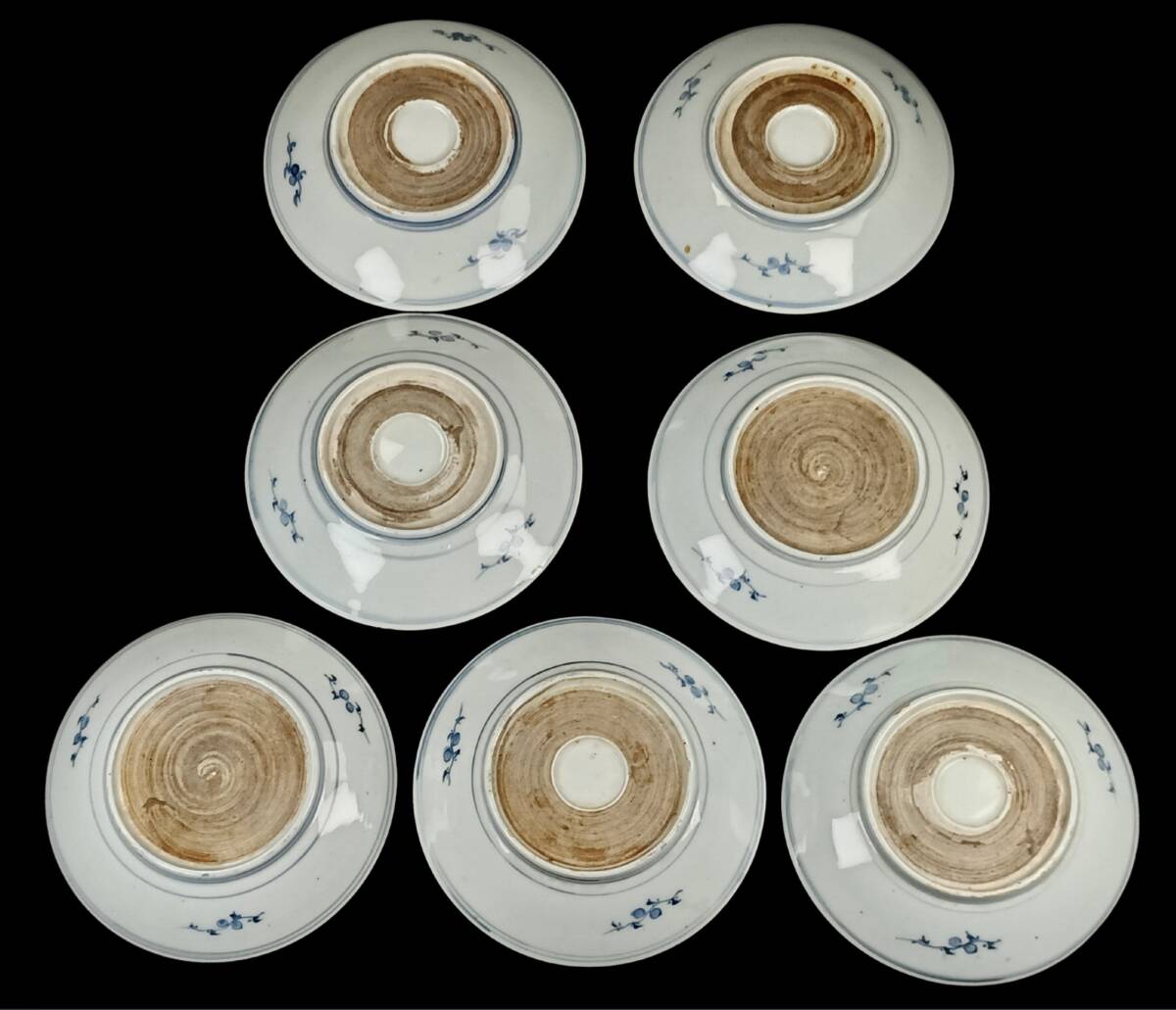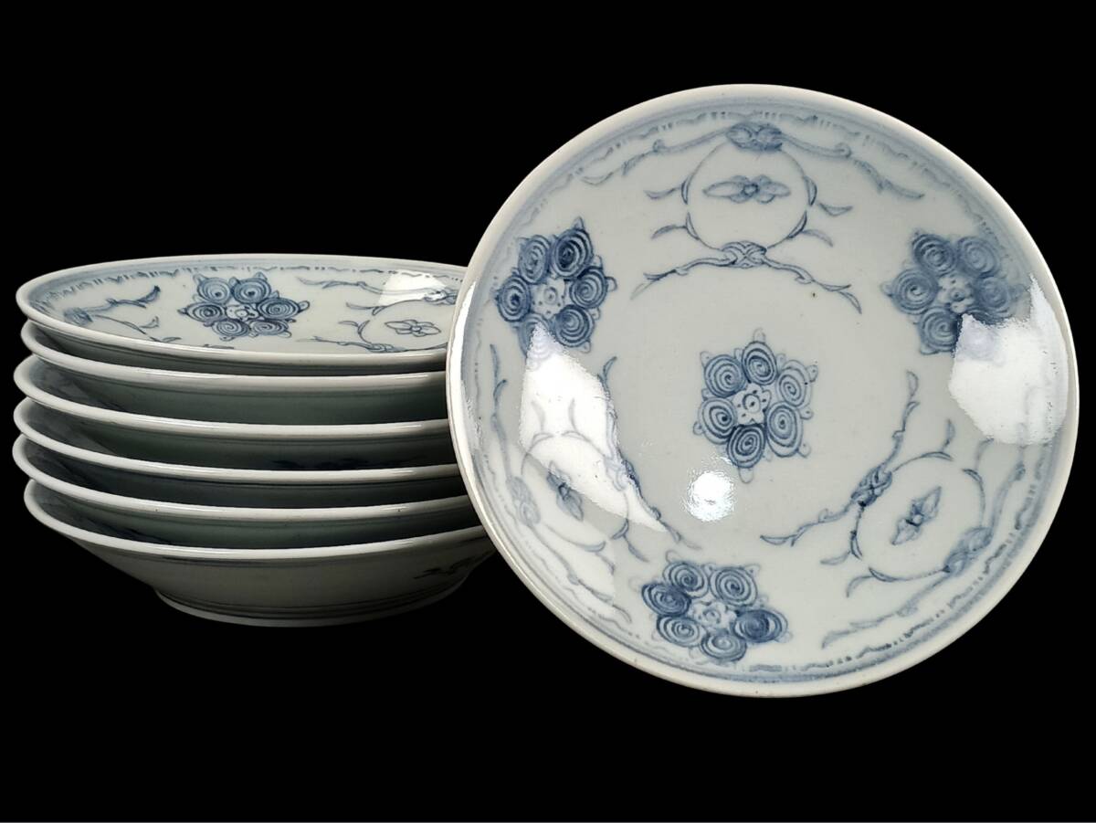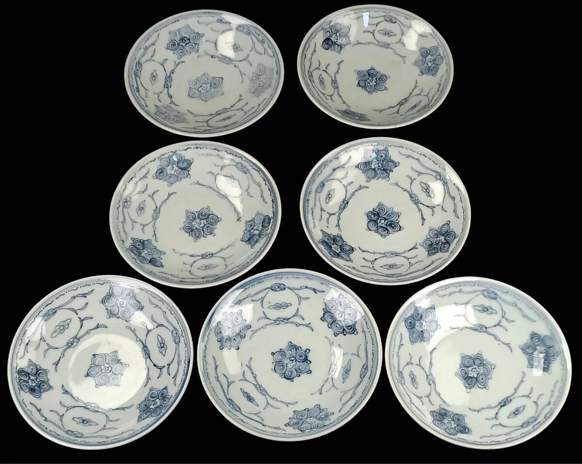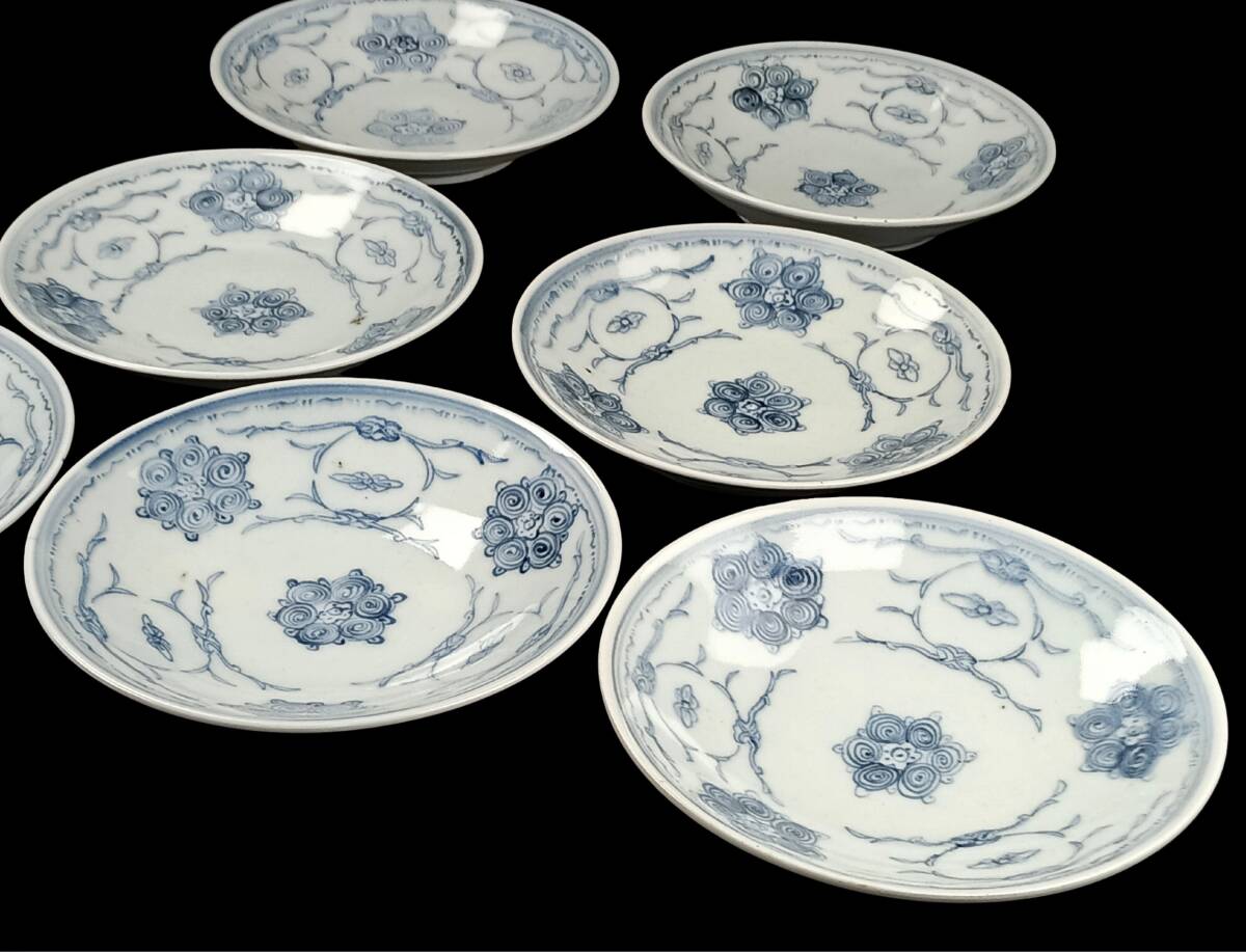 【忠古堂】古伊万里 染付 小皿 5寸皿 豆皿 手塩皿 7客セット 直径15cm 陶器 和食器 古美術 古道具 j-325