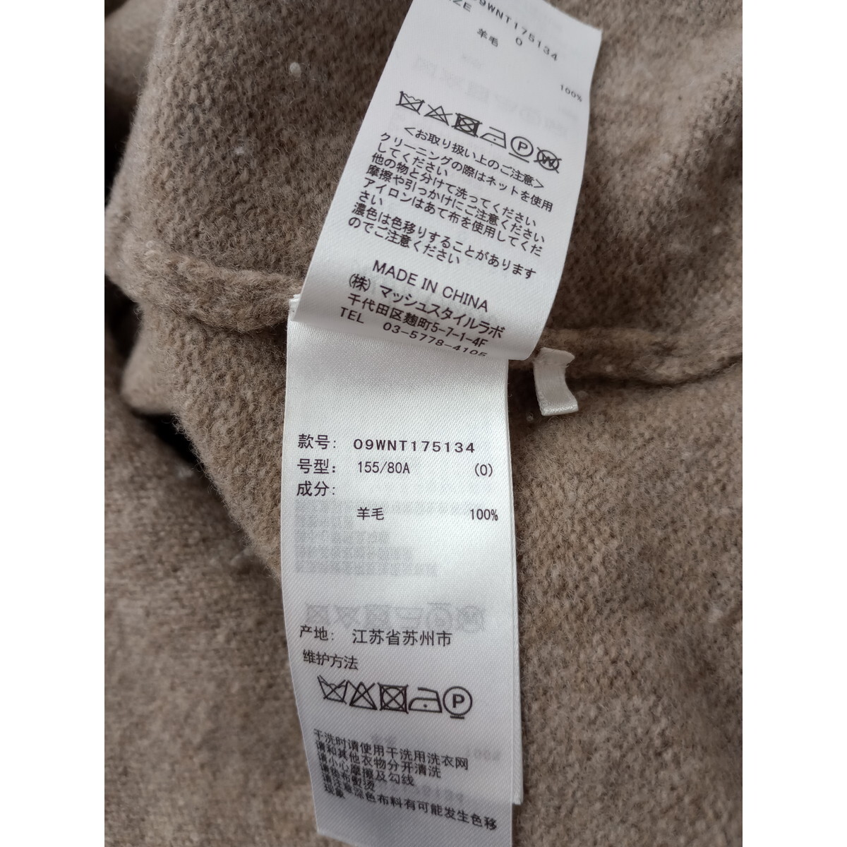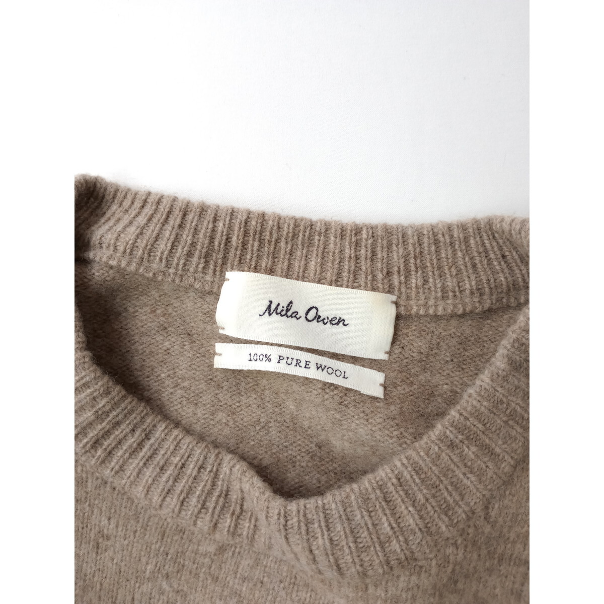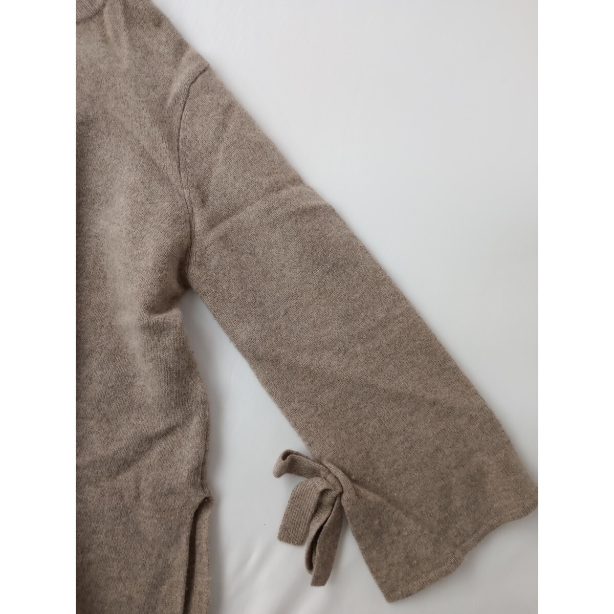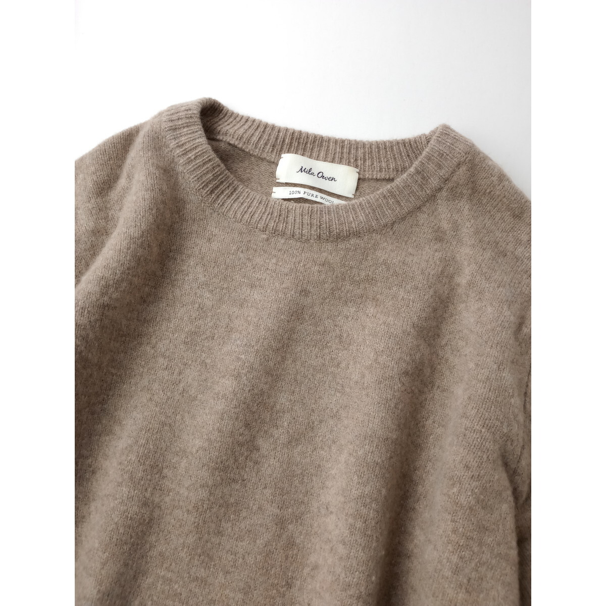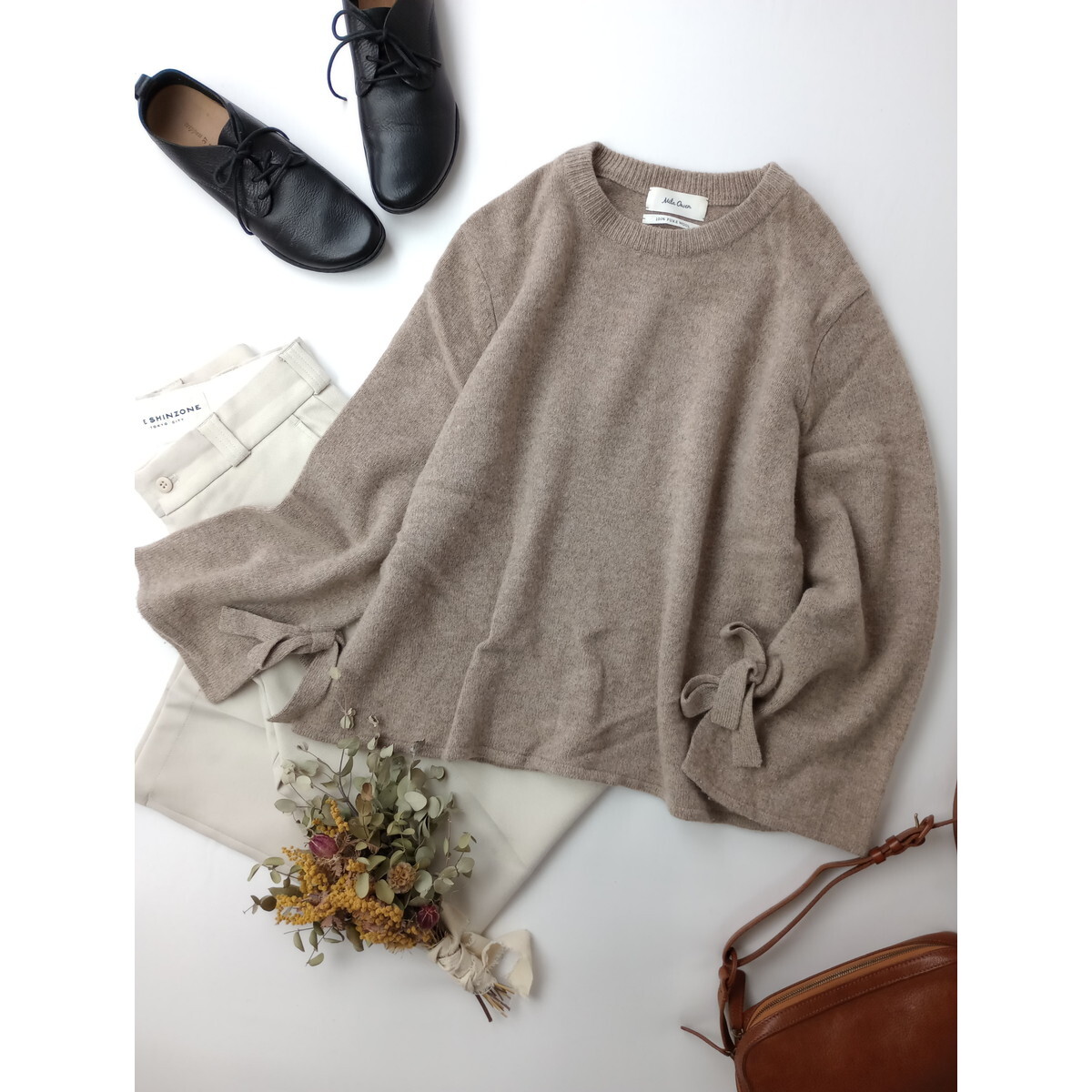 Mila Owen ミラ オーウェン「暖かく包みこんでくれる」ピュアウール100% 袖口リボン ニット プルオーバー 0 モカ ベージュ系(2Y+8777)☆