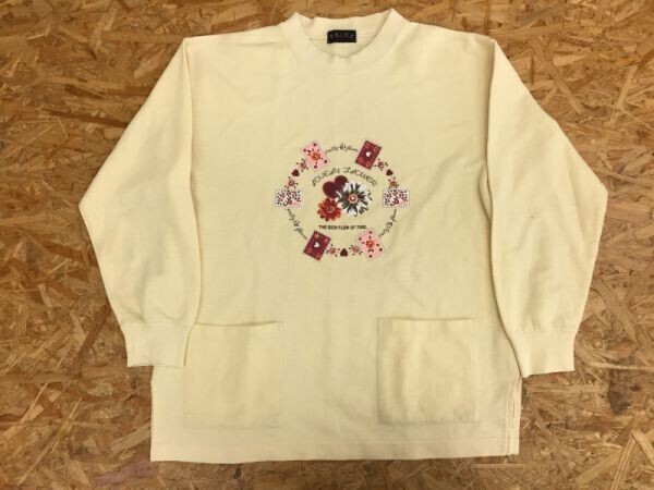 PRIVY ファンシー 花柄 レトロ ポケット付き 長袖スウェットトレーナー レディース  ベージュです。