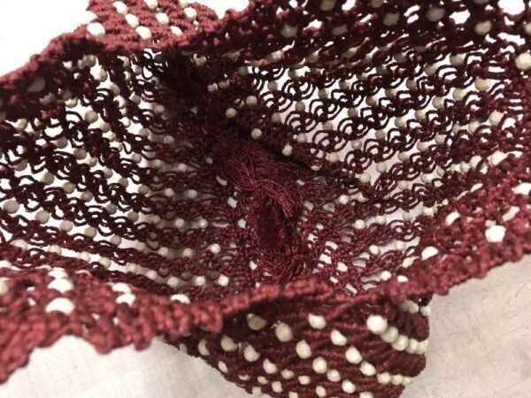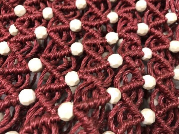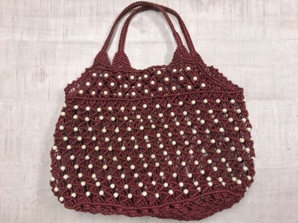 OLD レトロ デザイン オールド クラシック クロシェニット かご編み ハンドバッグ かばん 鞄 レディース ビーズ装飾 バーガンディー です。