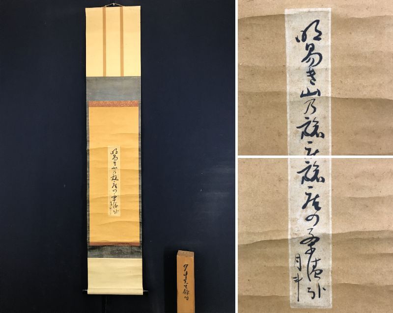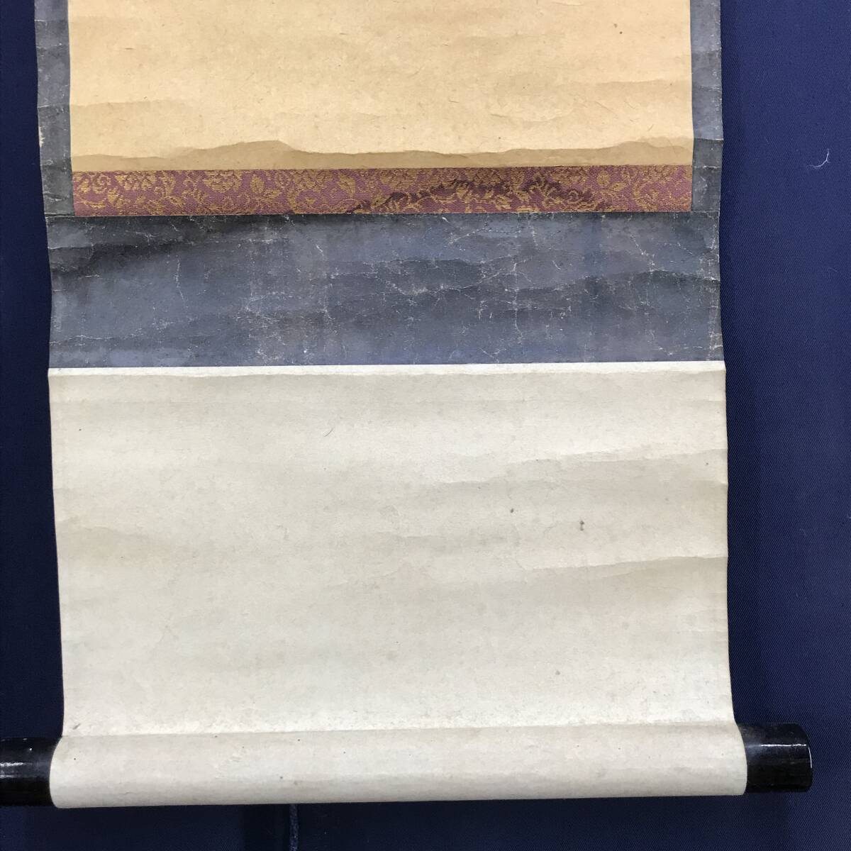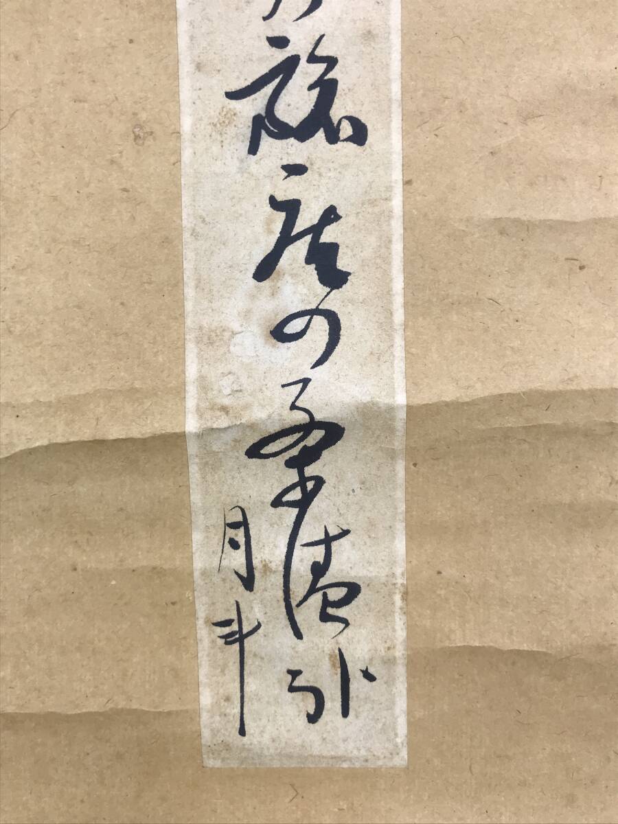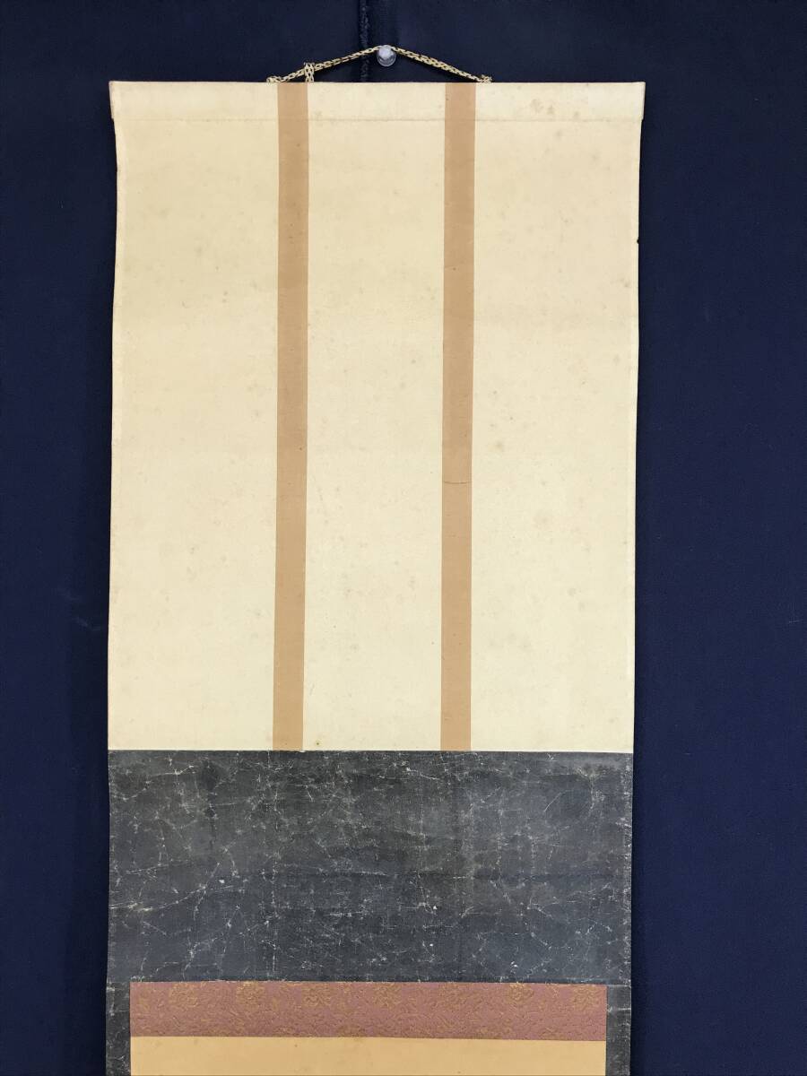 【作品状態】 本紙は紙本肉筆です。本紙は時代感あり、全体に汚れシミ、数ヶ所の折れあります。表装は全体に汚れシミ、天地に多数の糊シミ、多数の折れ、巻シワあります。