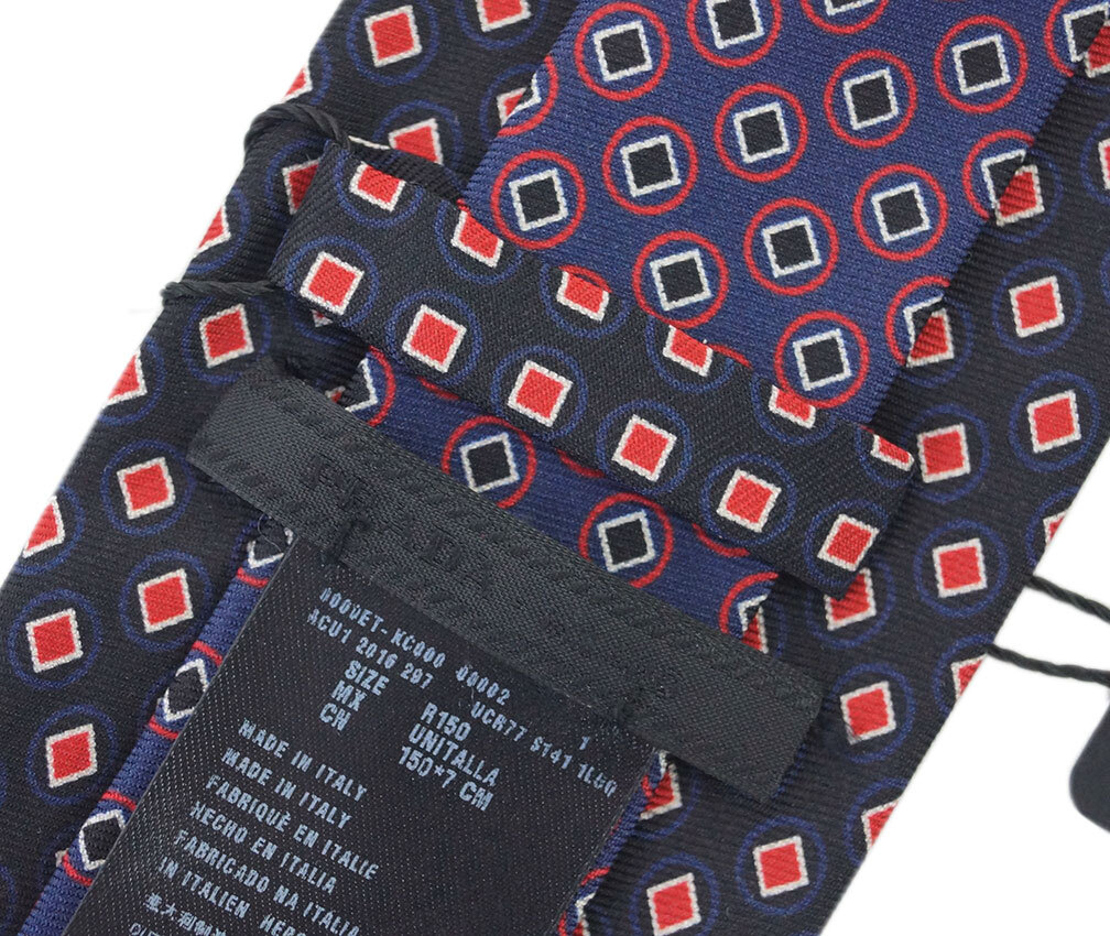 プラダ ブランド ネクタイ UCR77 PRADA メンズ 高級 シルク 100% NERO ブラック レッド 黒 赤 アウトレット