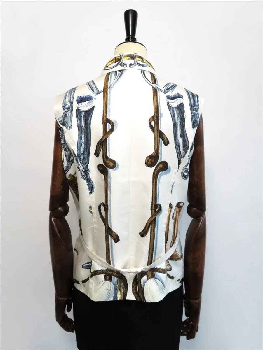 70640 HERMES / エルメス ブーツプリント シルク ベスト