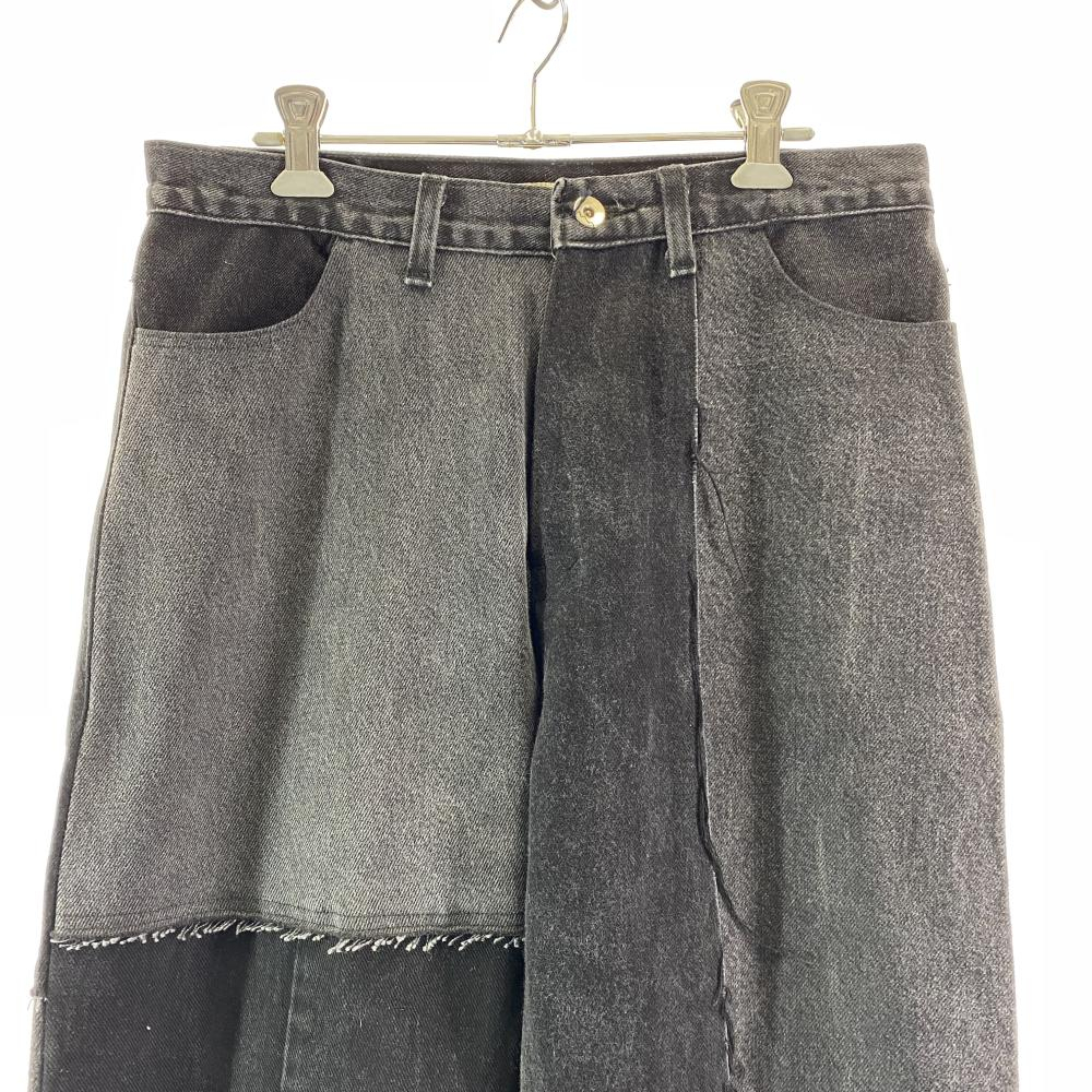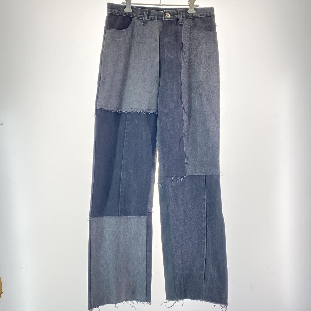 | 209999093761)古着屋lemontea パッチワークブラックデニムパンツ W76 ブラック |