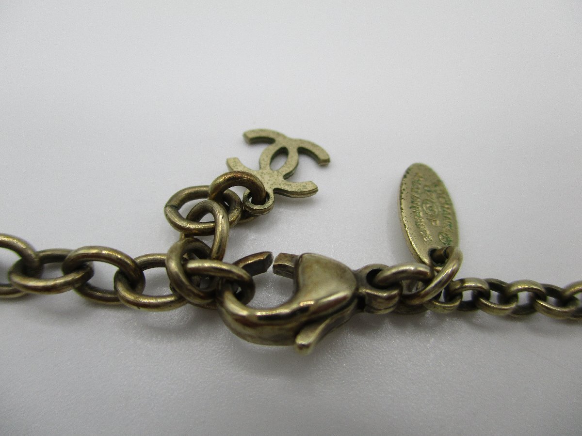 シャネルのネックレスです。 金属部分が銅色ぐらいの色になります。 ※元々なのか経年変化で元の色が落ちているのかはわかりません。 色ムラはありません。 古い商品ですが比較的キレイでまだまだお使い頂ける商品です。 中古品の為画像で状態をご確認の上、ご不明な点はご質問頂き、NC/NRでお願い致します。 |