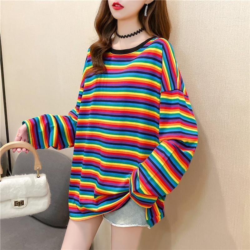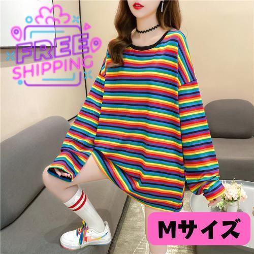 鮮やかな原色系のレインボーカラーマルチボーダー柄が特徴です。