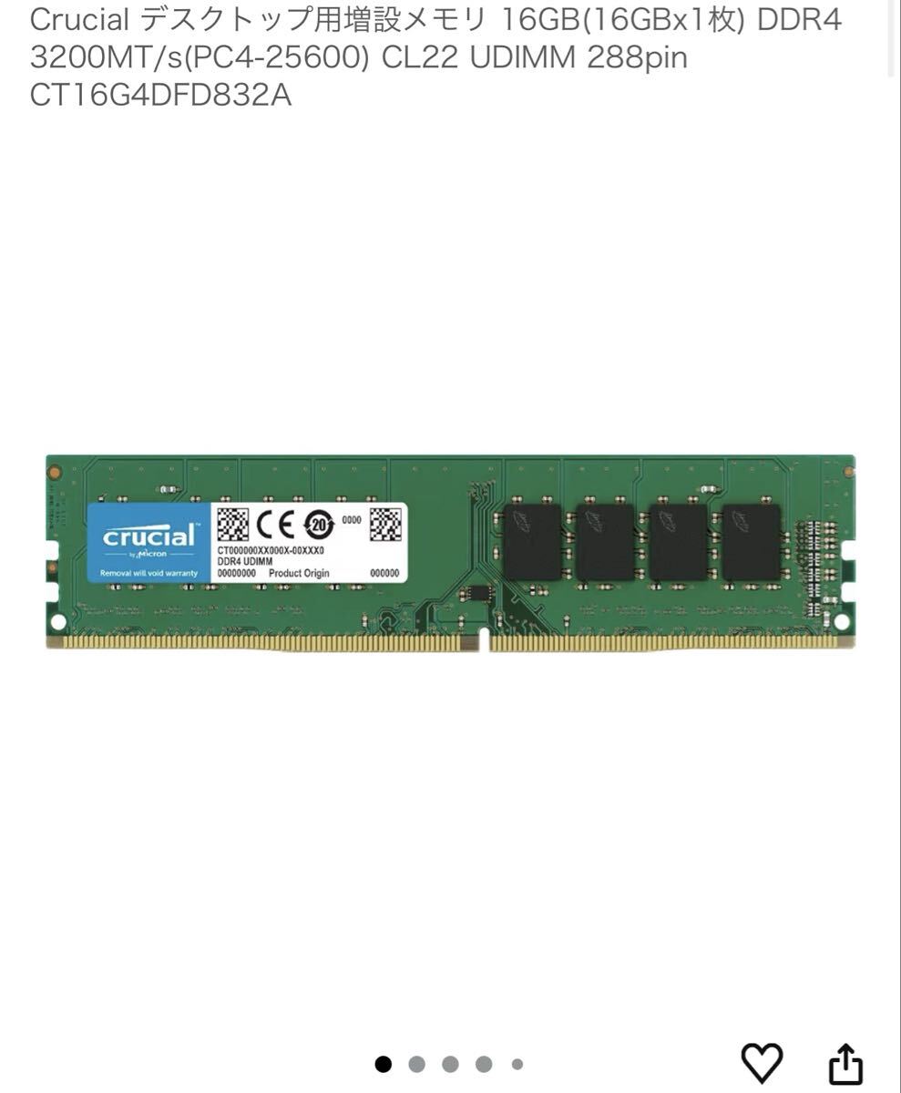 ・Crucial デスクトップ用増設メモリ 16GB(16GBx1枚) DDR4