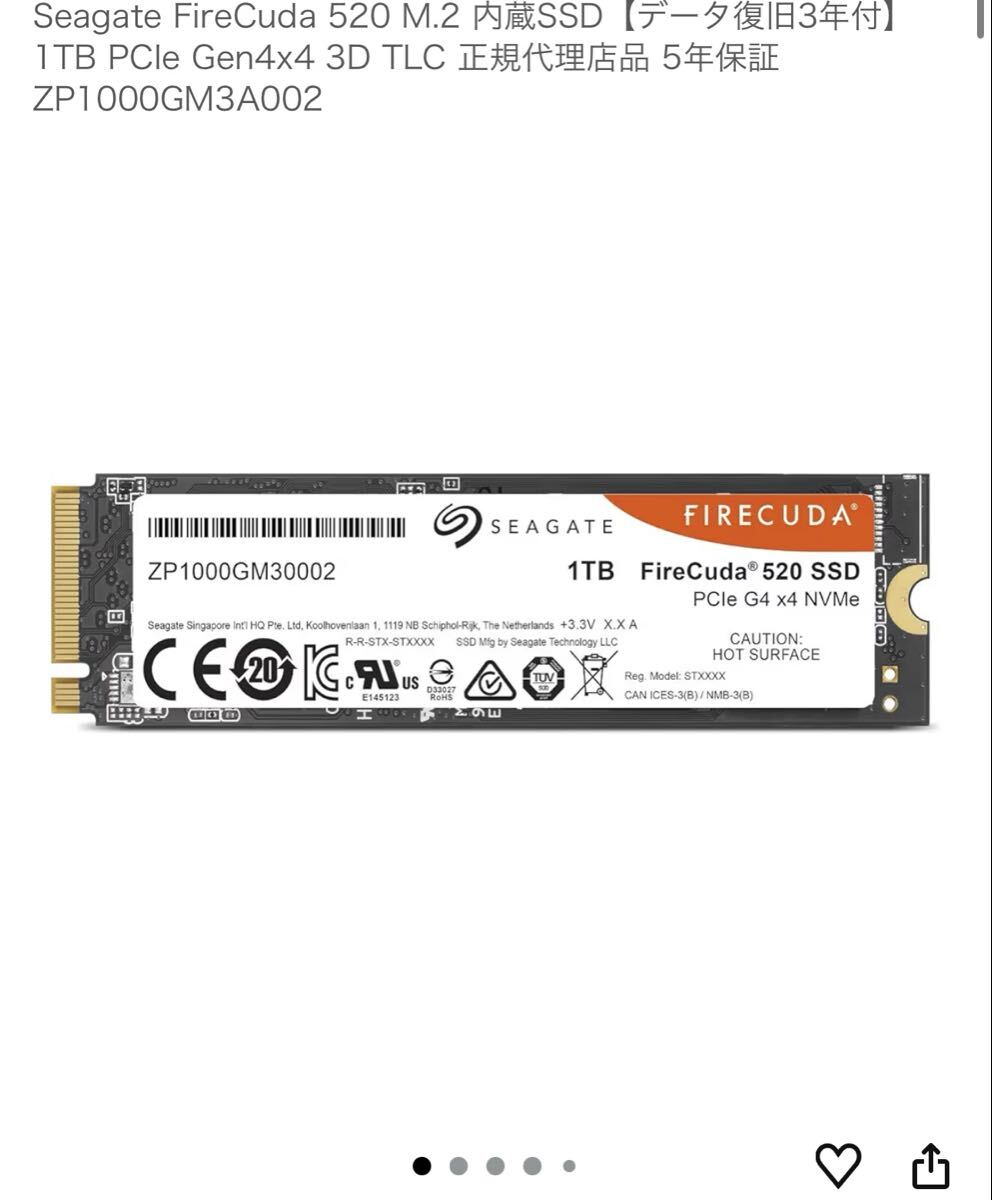 ・Seagate FireCuda 520 M.2 内蔵SSD 1TB