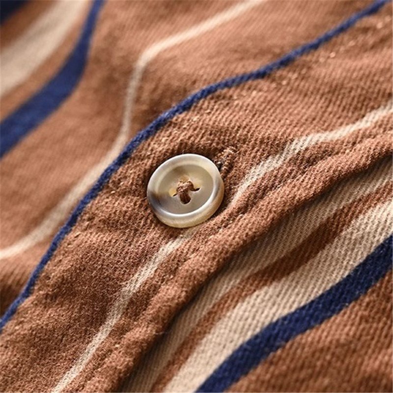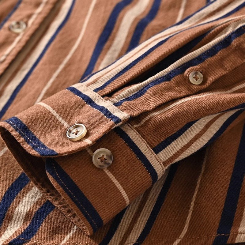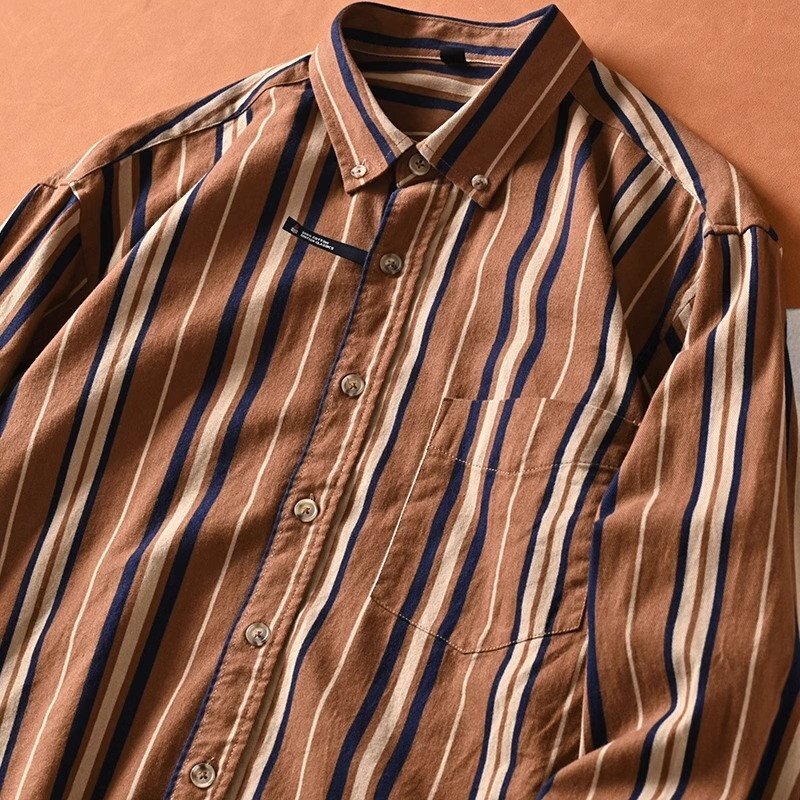 高品質 新品 DCKMANY メンズ長袖シャツ ヴィンテージカラー 縦縞 加工起毛 純綿 快適な着心地 春夏 カジュアル/カフェ色T5040-L