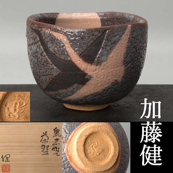 | 加藤健の鼠志野茶碗。共箱有。真作保証。 サイズは、幅約13cm、高さ約9.5cm。 傷・直しありません。 状態・詳細は、画像でご確認お願いいたします。 |