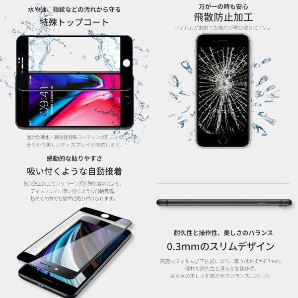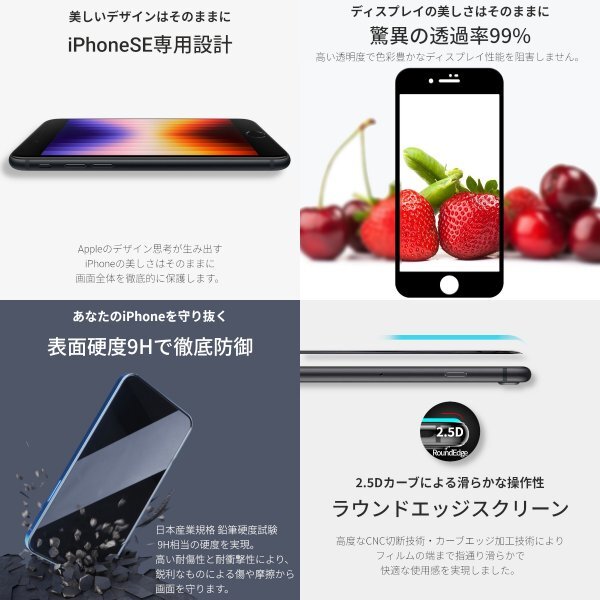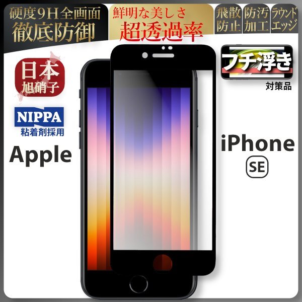 iPhone SE 第3世代 第2世代 強化ガラスフィルム SE3 SE2 旭硝子 全面保護 自動吸着 99%透過 保護フィルム 液晶保護フィルム