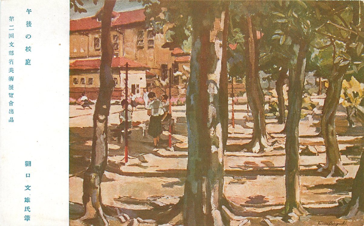 b-3551【絵葉書】◆ 美術展覧会出品 午後の校庭 関口文雄