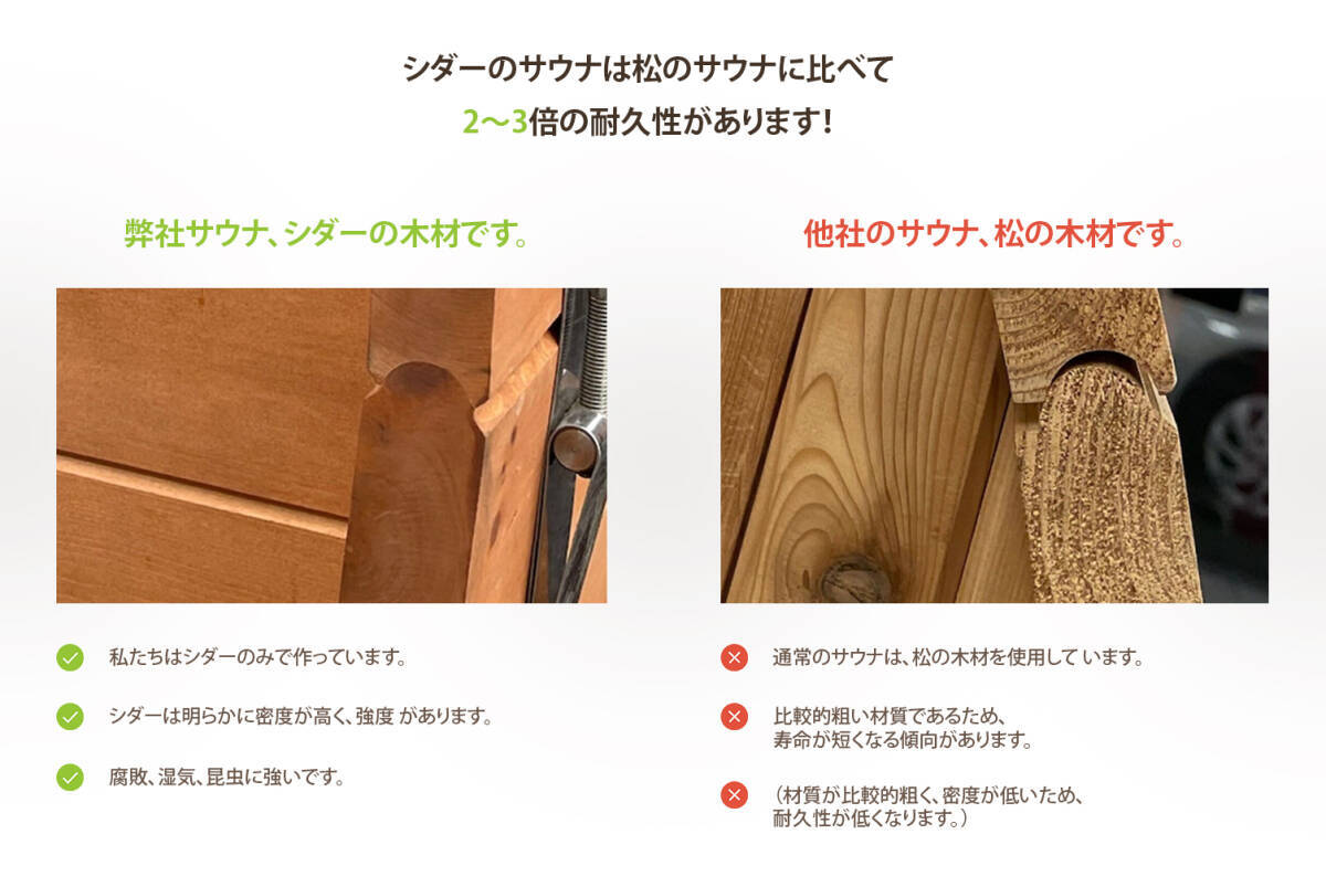 フィトンチッドの含有量 | 高い(30分で90%の抗菌効果) | 中程度(抗菌効果70~80%) | 中程度(抗菌効果70~80%) |