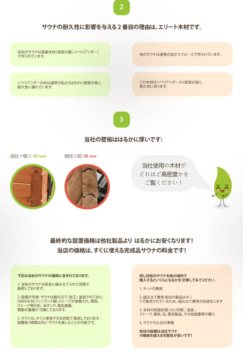 サウナでの利用 | リラクゼーションを強化、呼吸器疾患に役立ち、エネルギーを高める | 弱い効果 | 中程度の効果 |