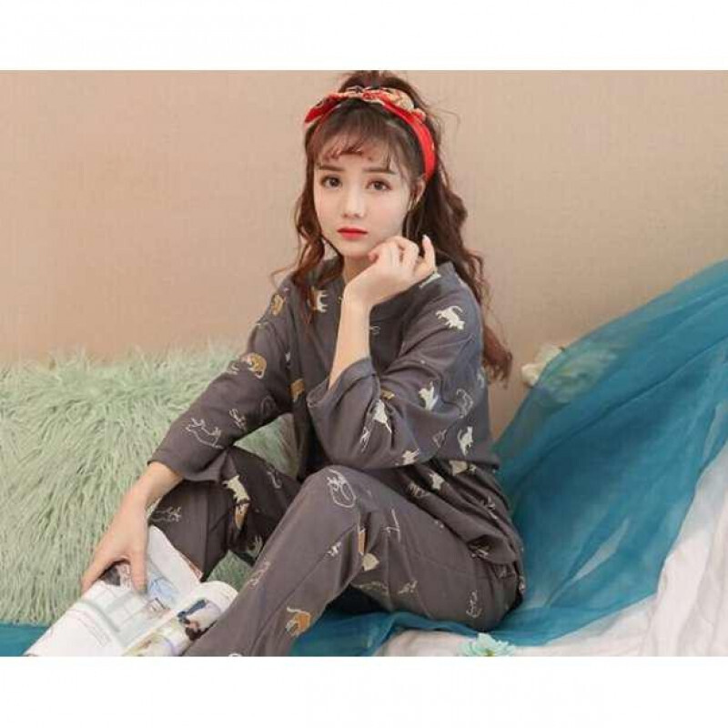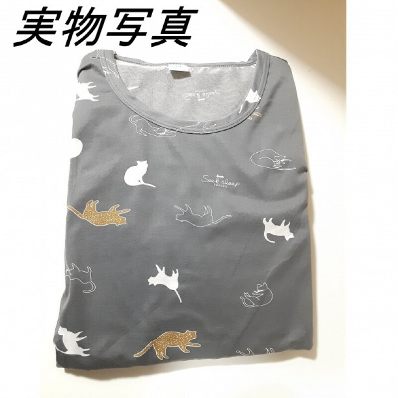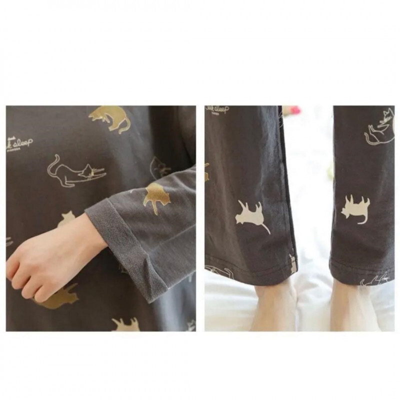 Mサイズ 灰色 猫柄 パジャマ ルームウェア 韓国 ネコ レディース かわいい