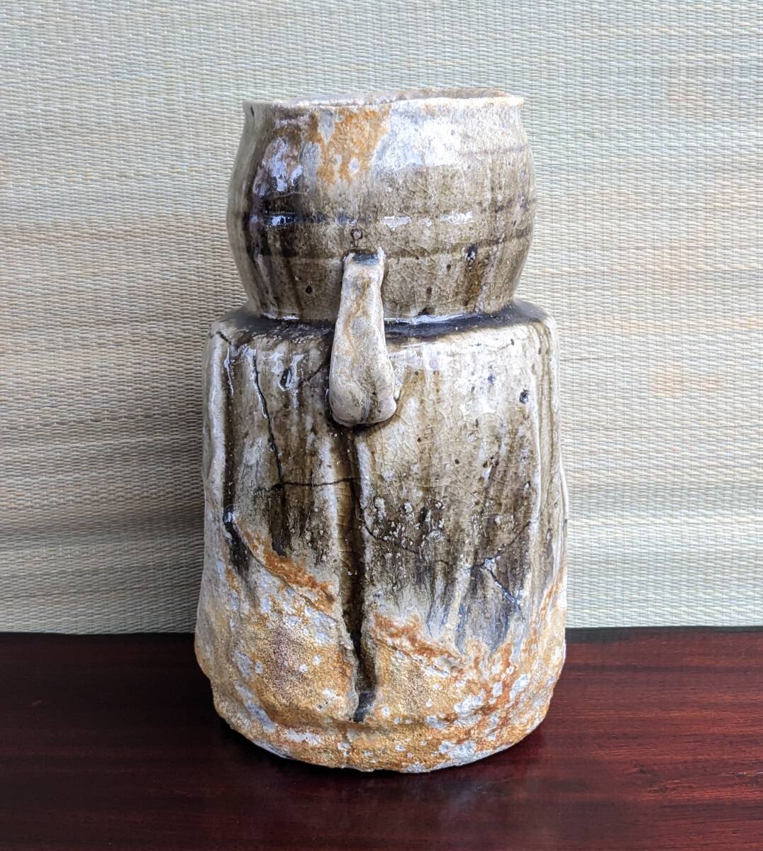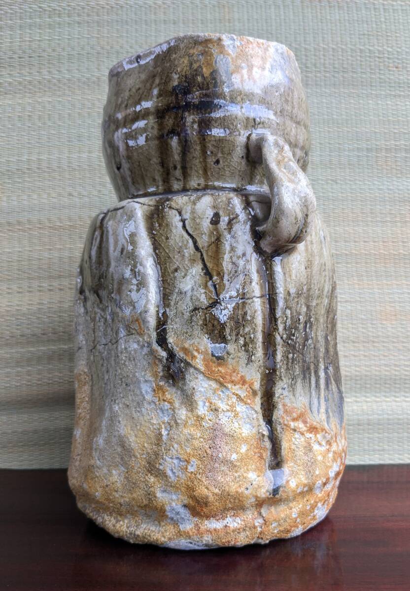 穴窯の名手 窯変 自然釉 ビードロ 青流れ 耳付き