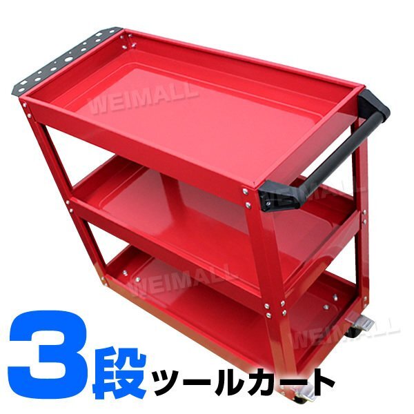 | 移動用ハンドル取っ手とキャスター付き、工具カート!!DIYでも便利に使える3段式の工具ツールカートワゴン です。ガレージ作業や工具の運搬に便利!ちょっとした作業台としても使えます! |