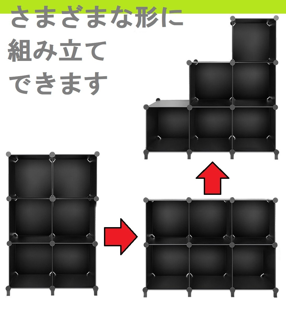 収納棚 収納ボックス カラーボックス 6個3段2列 収納ケース 本棚 ブラック キューブ型収納BOX 軽量組み立て式 mk-040