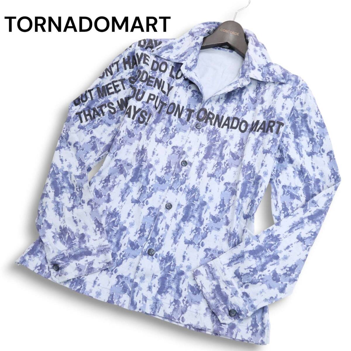 Y2K 00s★ TORNADOMART トルネードマート 通年 マーブル総柄★ テキスト プリント 長袖 ストレッチ シャツ Sz.S~M位 メンズ