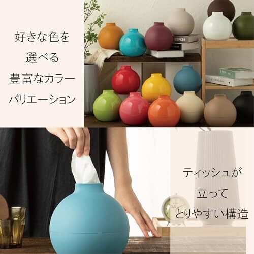 商品紹介 【アイコレクション ペーパーポットについて】 丸みのあるかわいいデザインが特徴のティッシュケースです。ソフトパックやボックスのティッシュ、ロールペーパー、ペーパータオルなど、さまざまなタイプの紙に対応しております。そのため、キッチンやリビング、洗面所など、どこでも活躍できます。本体は水をはじくABSでできており、ぬれた手でもご使用になれます。 【外観】 黒、白、ベージュなどのスタンダードなカラーから、赤やオレンジなどのビビッドなカラー、かわいいミッフィーの顔がデザインされたものまで、様々なバリエーションがあります。お部屋のインテリアや雰囲気に合わせる、ペーパーポットをインテリアの主役に据えるなど、活かし方はたくさん。さまざまな色を選ぶことができますので、お好みの色が見つかるはずです。 【機能】 ティッシュペーパーをはじめ、ペーパータオル、トイレットペーパーなど様々な種類の紙を入れてご使用になれます。中に入れる量を調整することで、厚手の紙から薄いロールペーパーまで対応可能。本体は耐水性のあるケースのため、汚れが気になるときはウェットティッシュなどで拭きとったり、分解して水でさっと洗うこともできます。 【利用シーン】 ・リビング ティッシュボックスをそのまま置くのは生活感がありすぎる、と思っている方や、ティッシュを目を惹くおしゃれなオブジェにしたい方におすすめです。 ・子供部屋 角がなく丸みのあるデザインのため、小さなお子様にも安全です。ぬいぐるみ等、かわいいインテリアがたくさんのお部屋にもよく馴染みます。 ・洗面所 耐水性のあるケースを用いているため、濡れた手でもご使用になれます。白を基調とした洗面所に、アクセントで明るいカラーを置いても、同系統の色で統一感を出してもおしゃれです。 ・寝室 丸みを帯びたやさしい形状と、アイボリーやブラウンなどのやわらかな色合いはゆっくり体と心を休めたい寝室に置くとゆったりと落ち着いた気持ちで過ごせます。イエロー、オレンジ等鮮やかなビタミンカラーなど、一日の始まりにふさわしい、エネルギッシュなカラーを置いて朝のエネルギーチャージにも。 【サイズ等仕様】 材質:ABS製 サイズ:直径17cm×高さ17.3cm 原産国;日本 その他注意事項:取り出し口はつねに開いており、フタもないため、ウェットティッシュやおしりふきなどの乾燥を避けたいもの、濡れた状態のものには不向きです。利用できるペーパー幅は125mmまでとなります。 より ●ティッシュペーパーとトイレットペーパーの両方セットできるホルダー