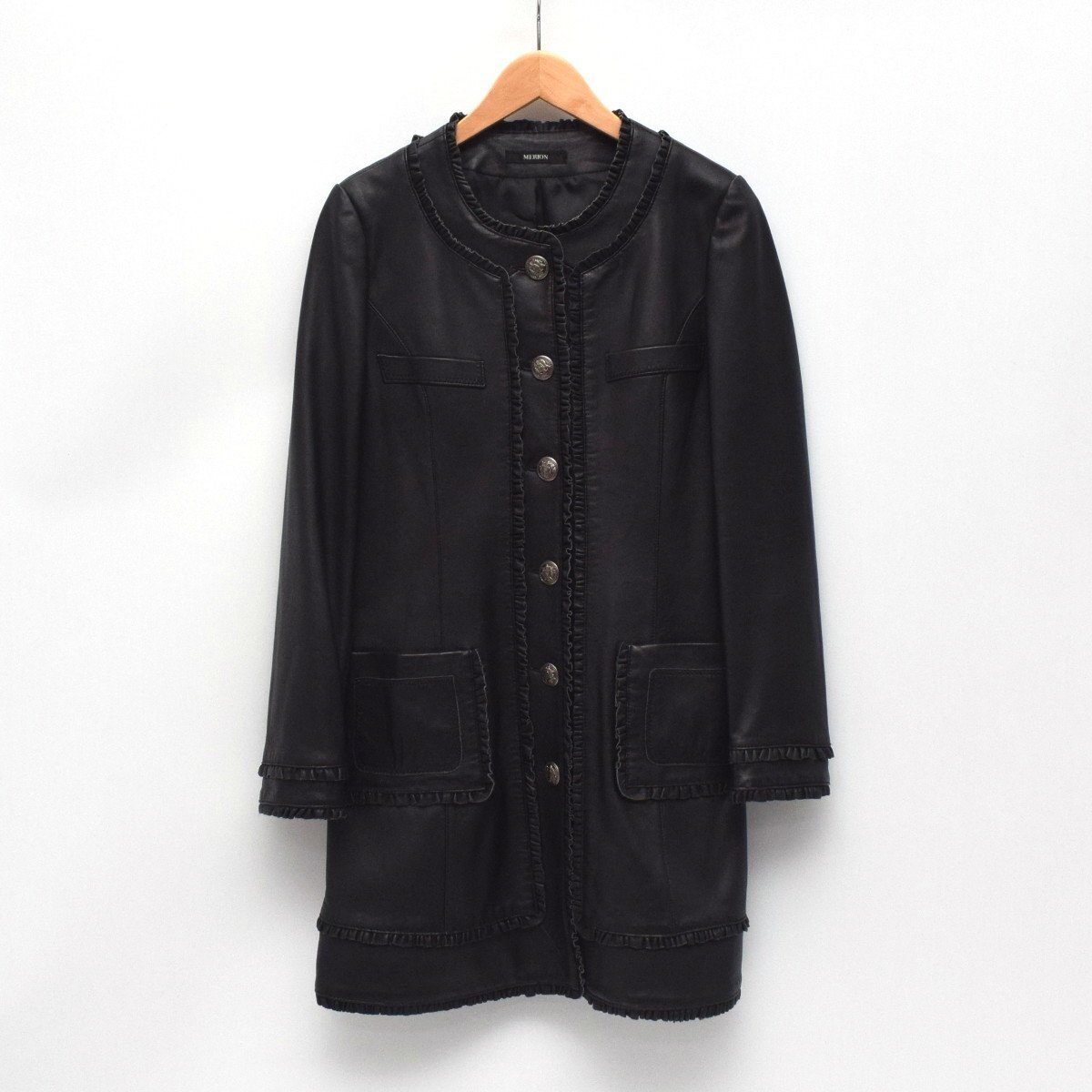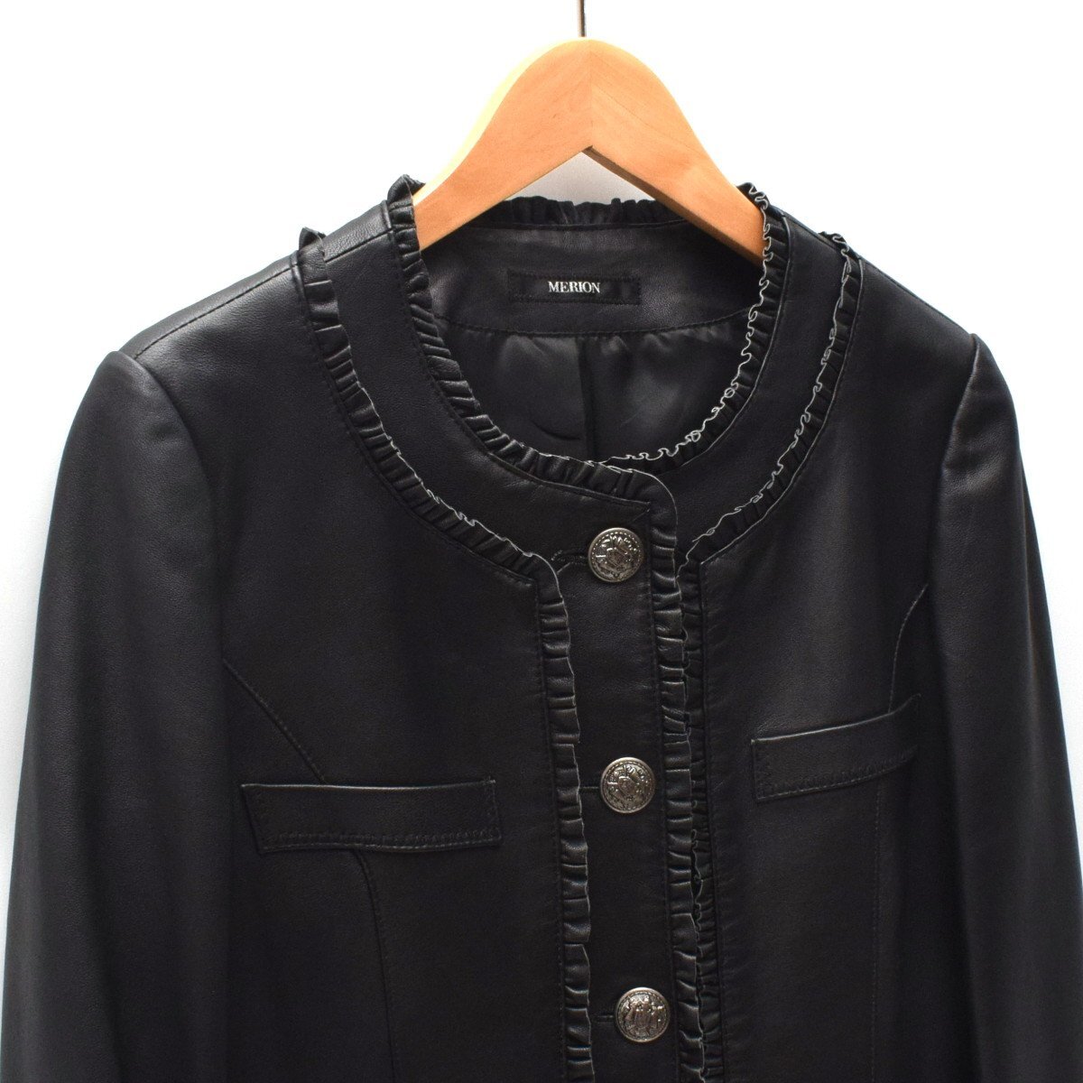 | MERION メリオン 羊革 ラムレザー フリル ジャケット コート SIZE:9号 本革 シープスキン |